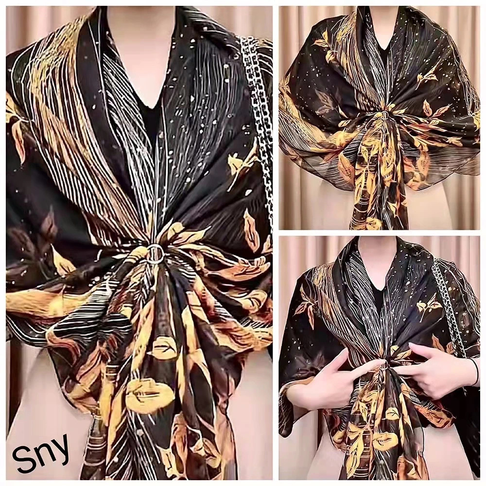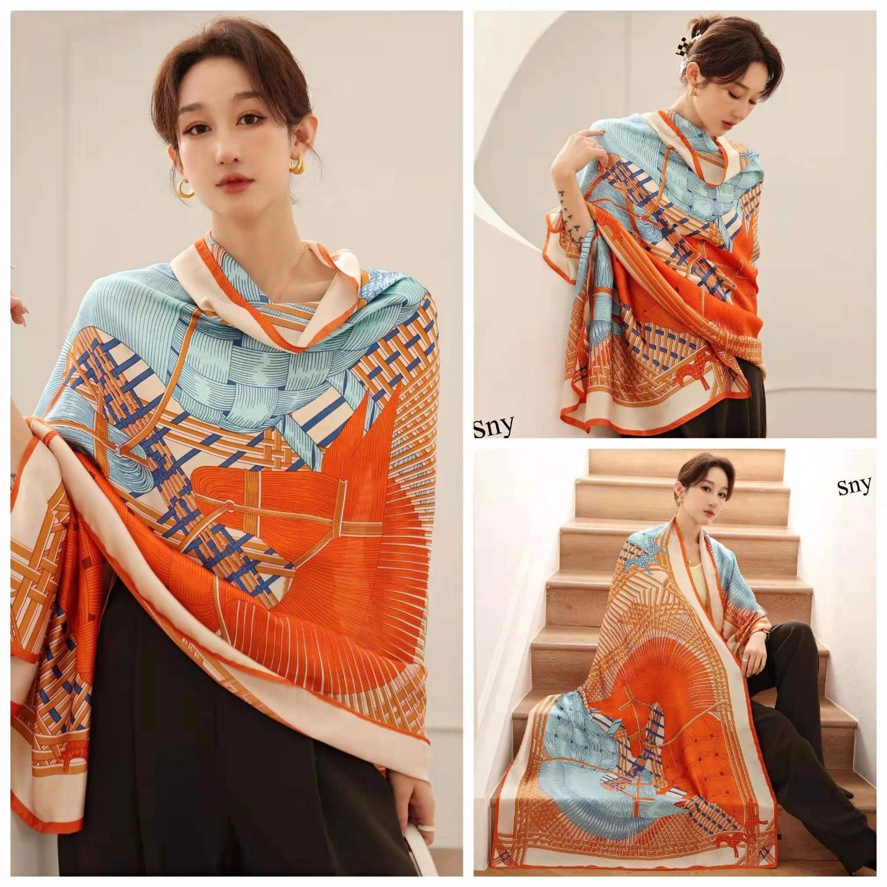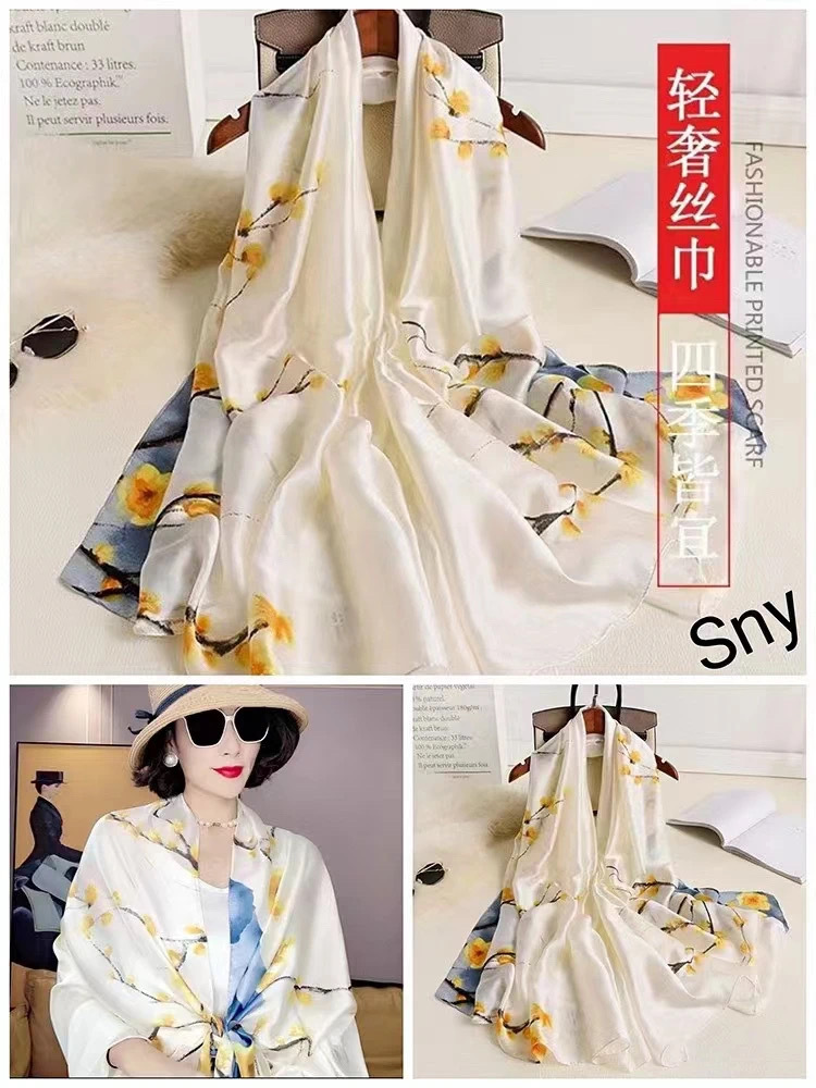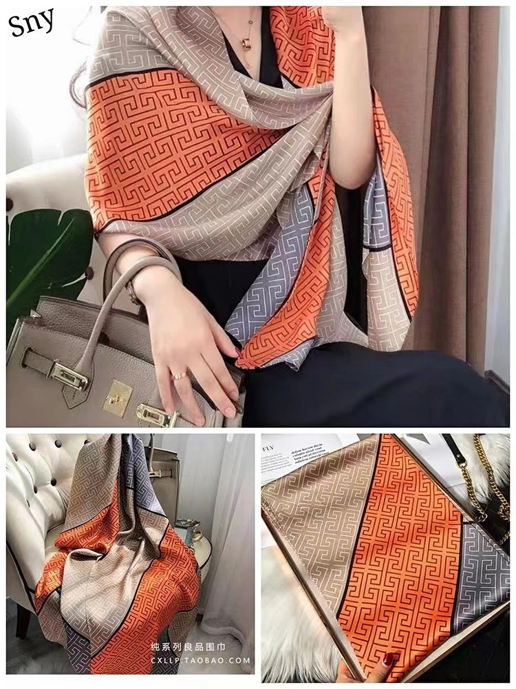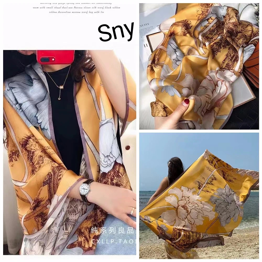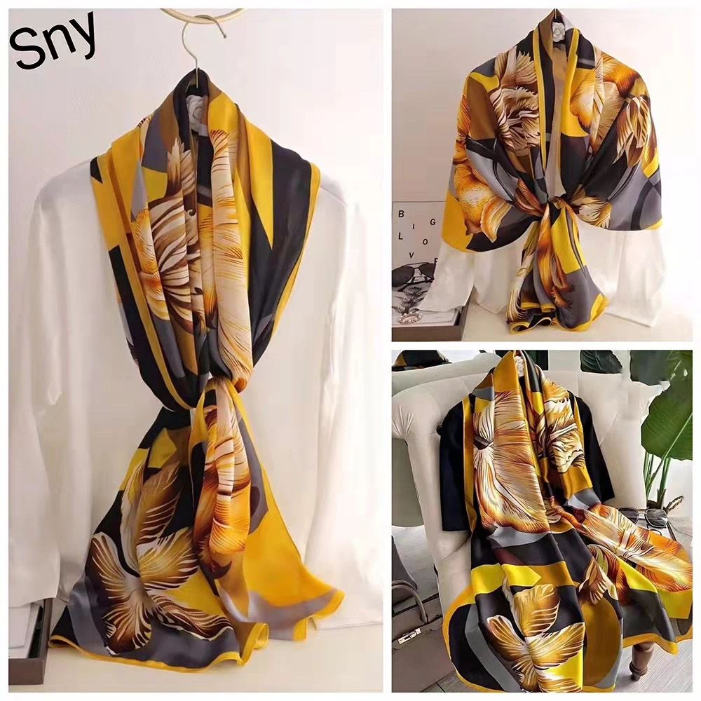 새로운 도착 리 브로케이드 새틴 버라이어티 인쇄 뽕나무 실크 스카프 여성용 스카프 선스크린 목도리 여름 해변 수건 긴 스카프스토어 가기