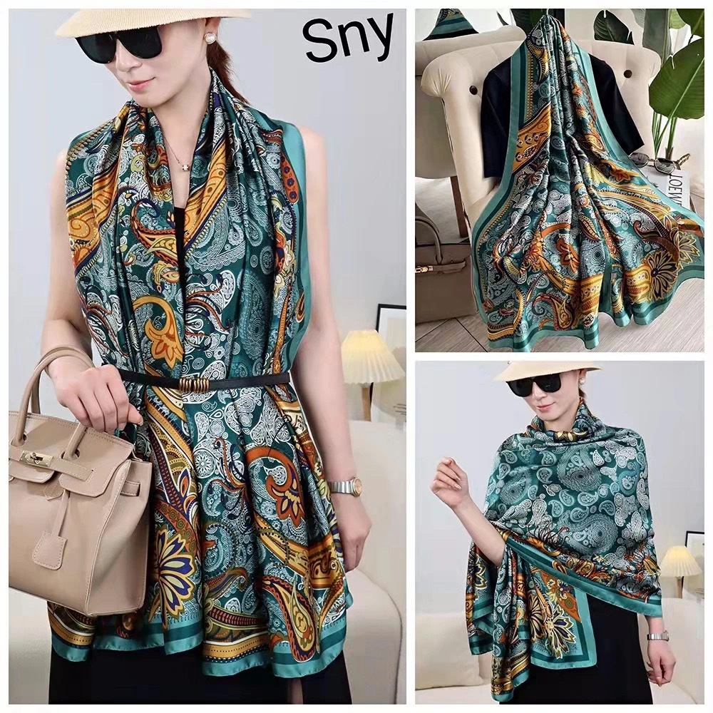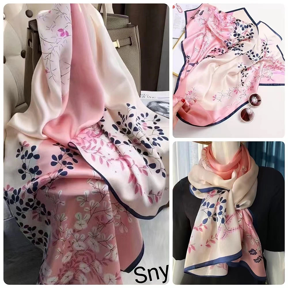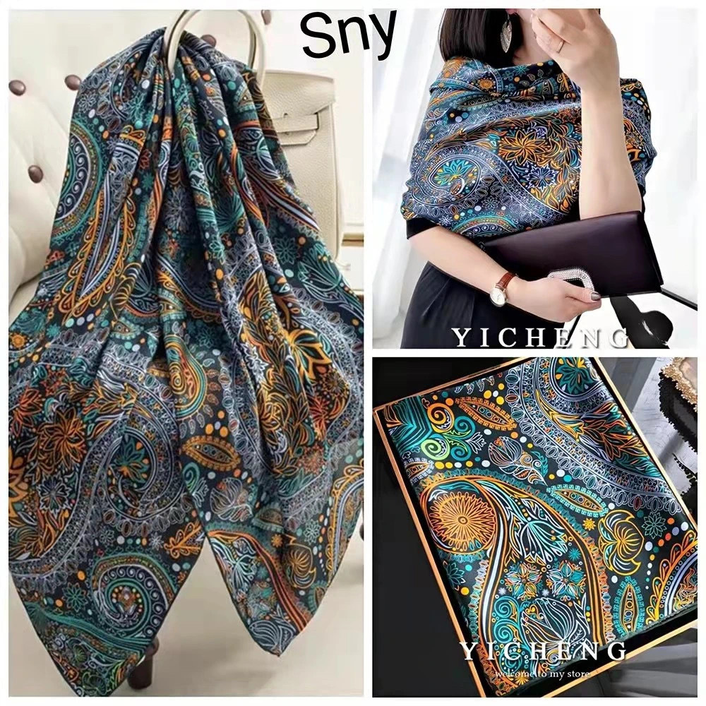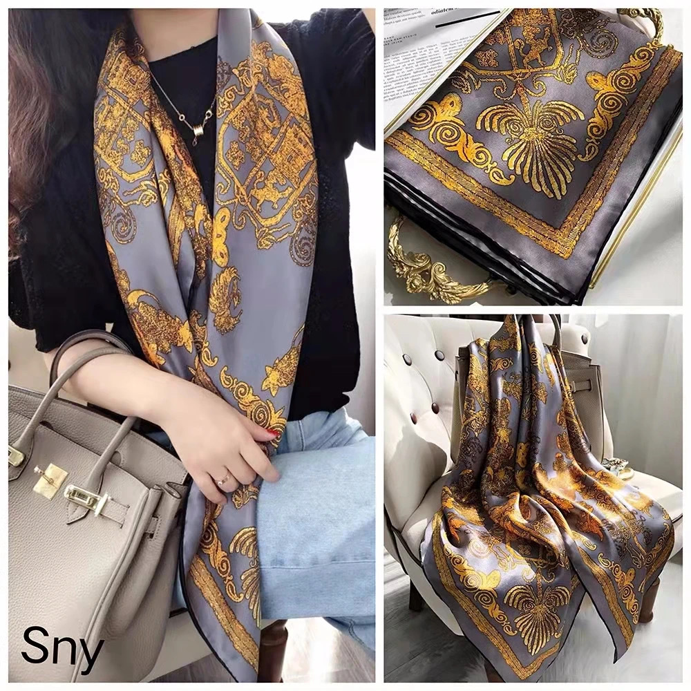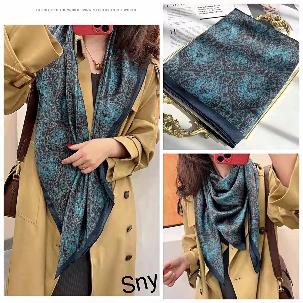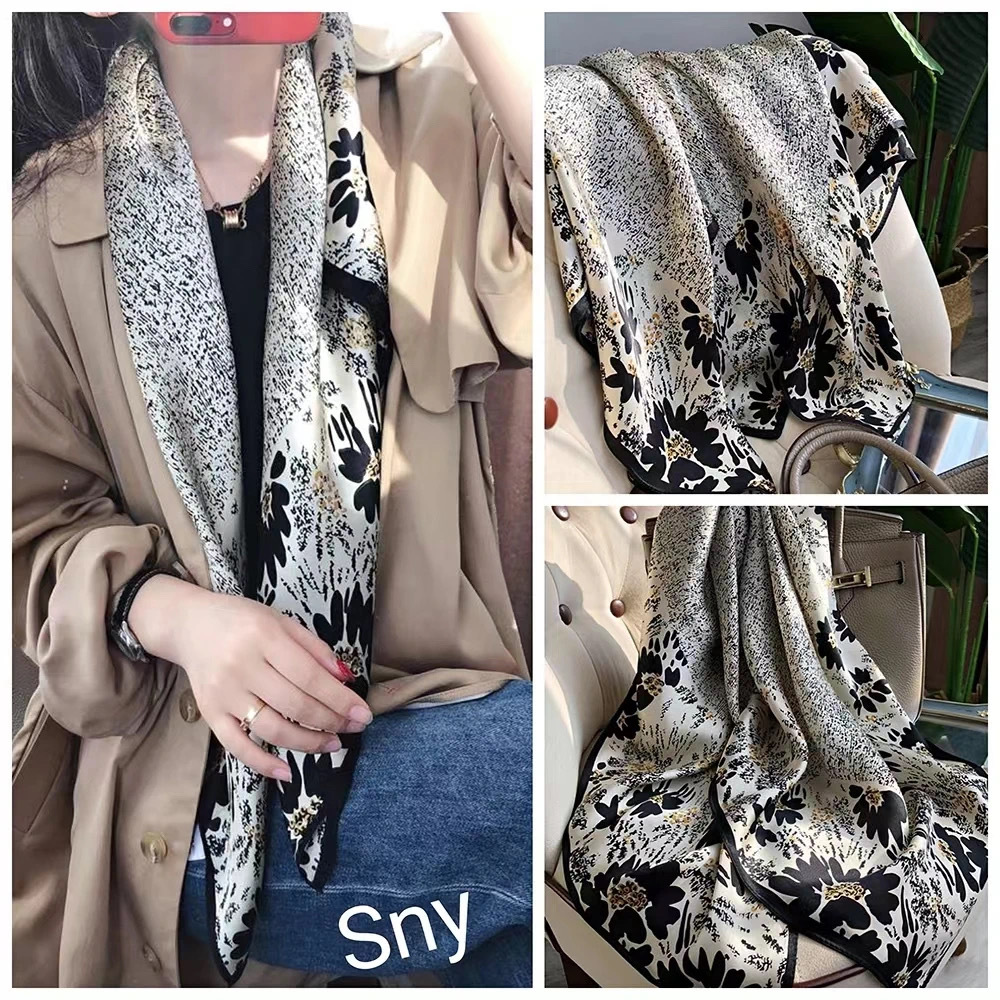새로운 도착 리 브로케이드 새틴 버라이어티 인쇄 뽕나무 실크 스카프 여성용 스카프 선스크린 목도리 여름 해변 수건 긴 스카프