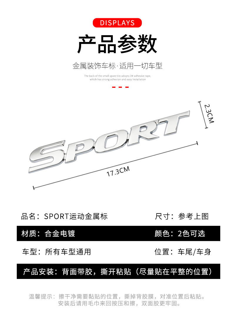 자동차 로고 스포츠 메탈 3D 입체 자동차 스티커 꼬리 스티커 도어 패널 측면 스티커 SPORT 스포츠 버전 수정