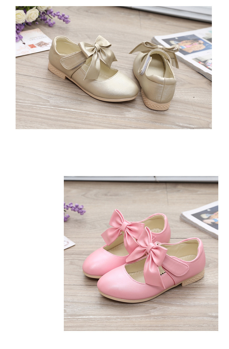 대외 무역 아동 신발 2025 봄과 가을 소녀의 가죽 신발 나비 매듭 중형 및 대형 어린이 작은 하이힐 공주 신발 드롭 배송