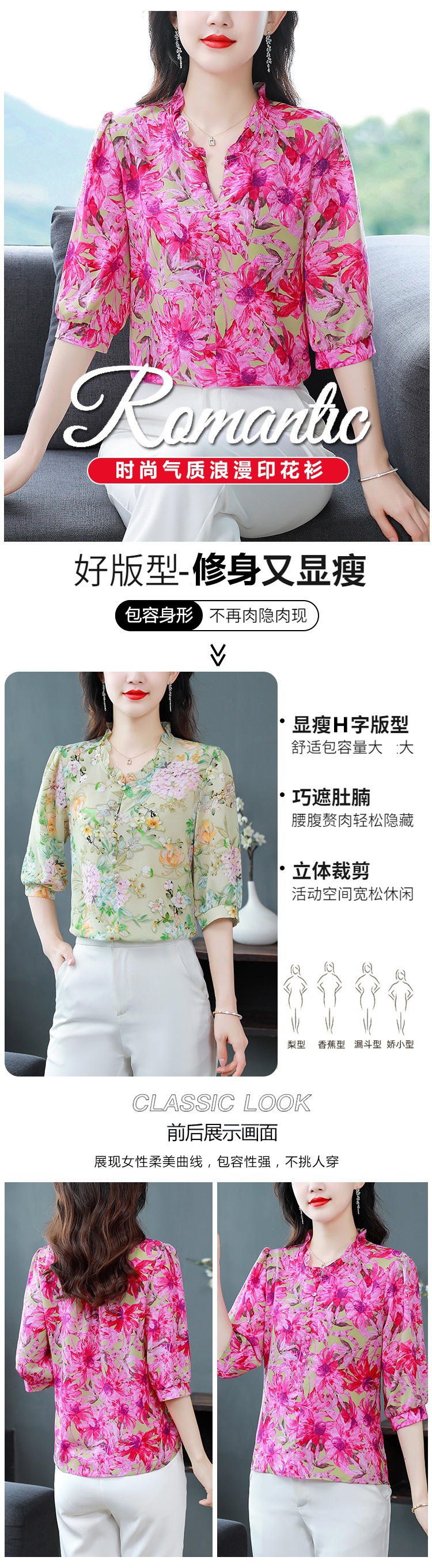 리얼 재고 뽕나무 크레이프 탑 여성 여름 2023 새로운 느슨한 꽃 연령 감소 배꼽 덮는 세련된 셔츠스토어 가기