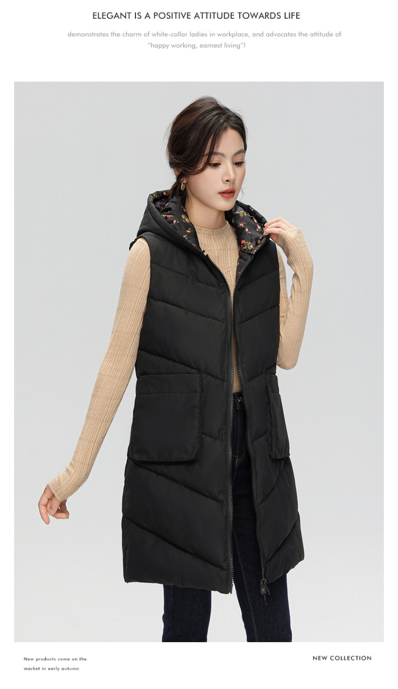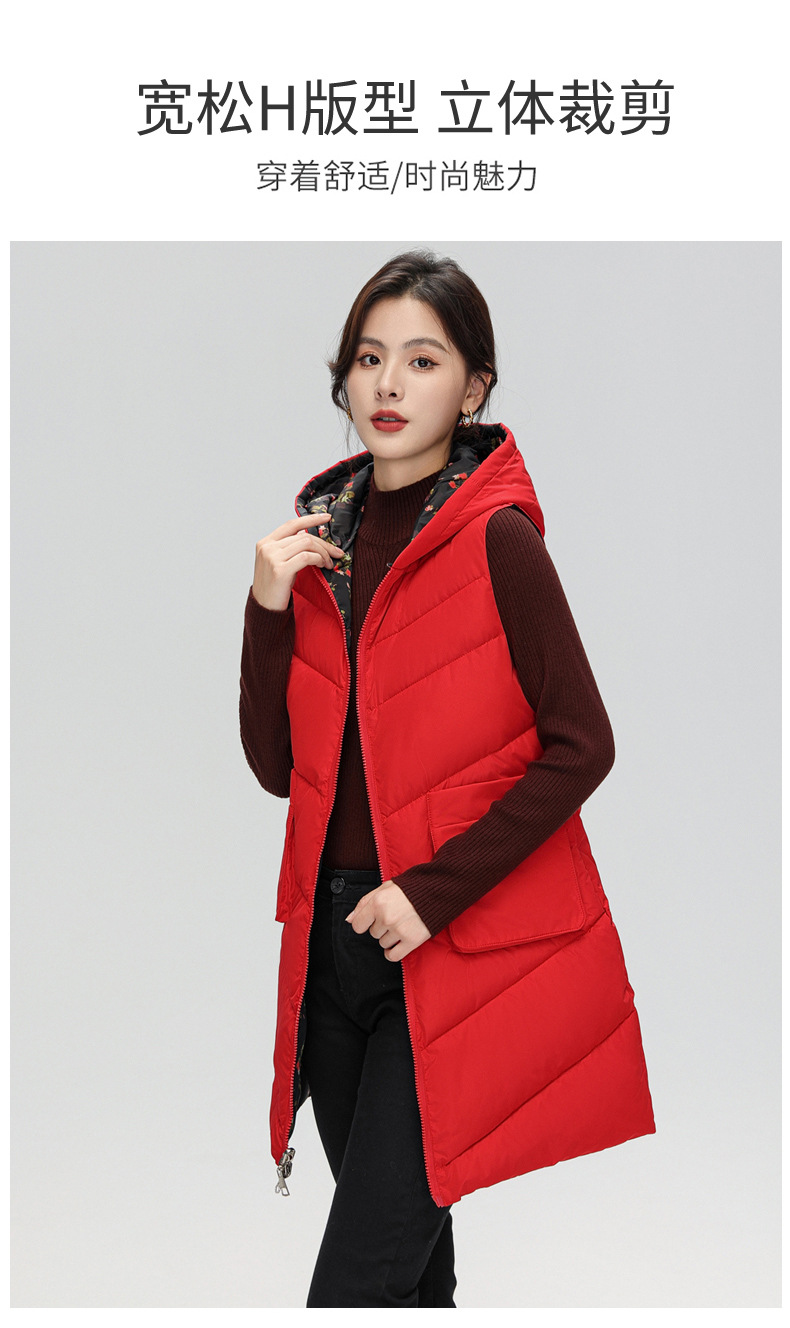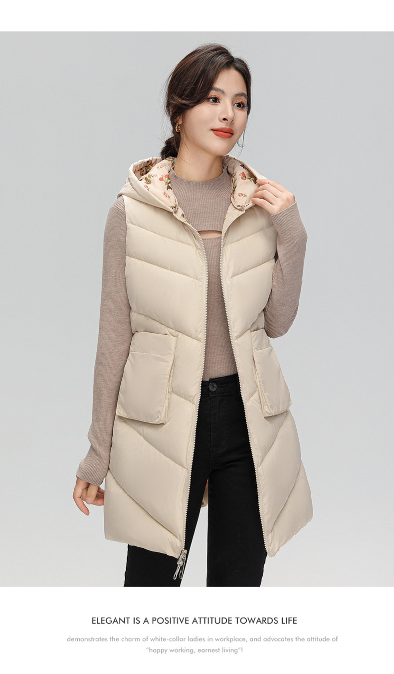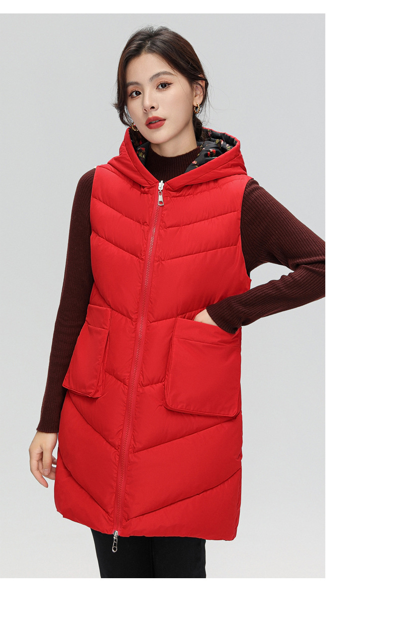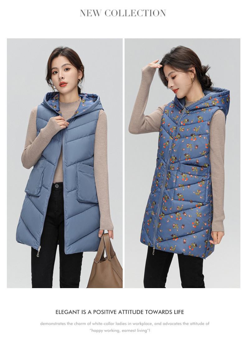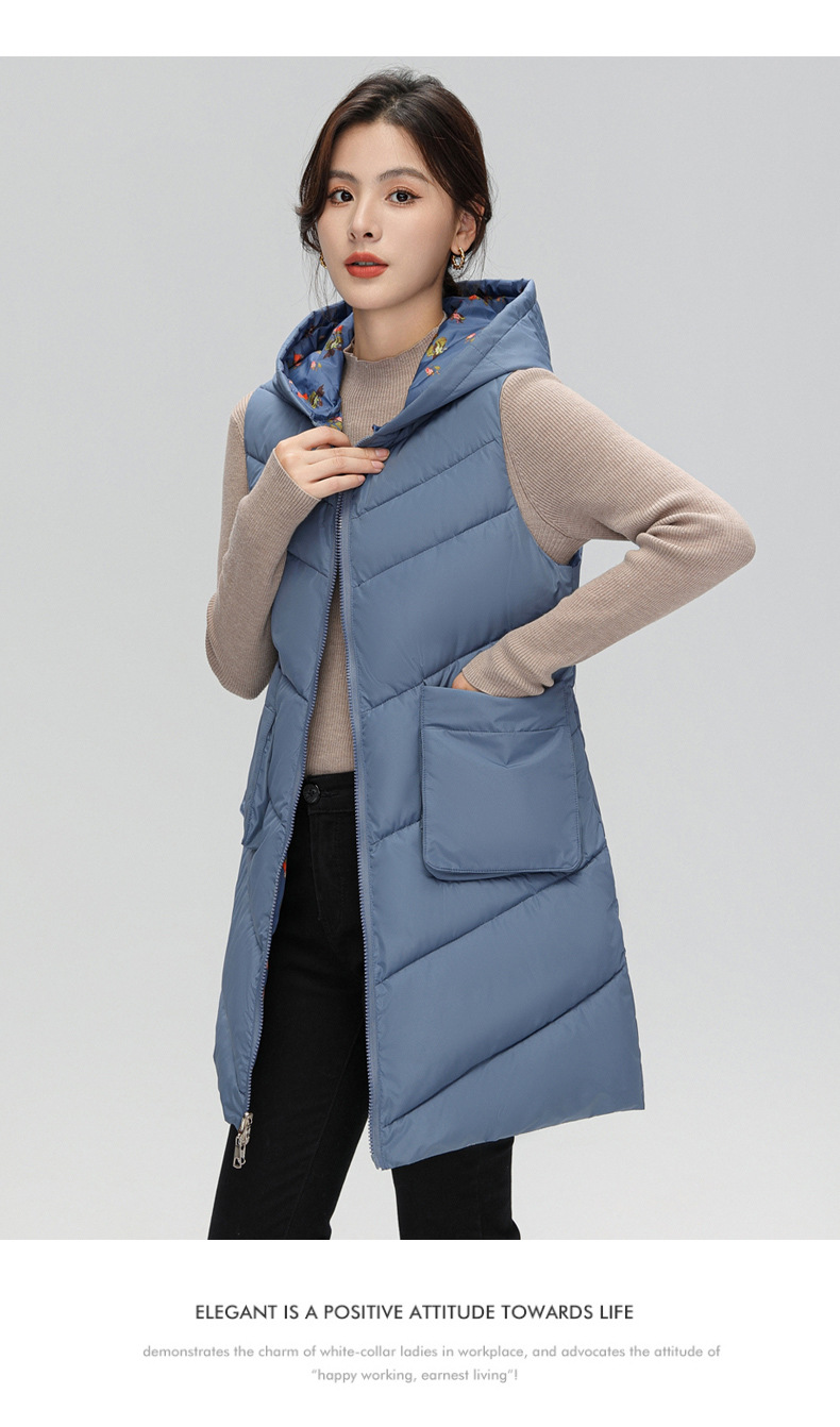 양면 착용 가능한 후드 면 조끼, 따뜻한 가을 겨울 여성용 중간 길이 2024 신상 한국 스타일 두꺼운 슬림핏 양면 착용 가능한 재킷