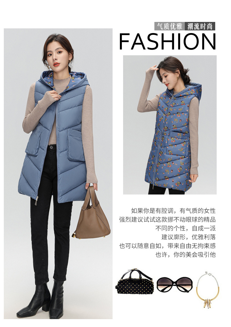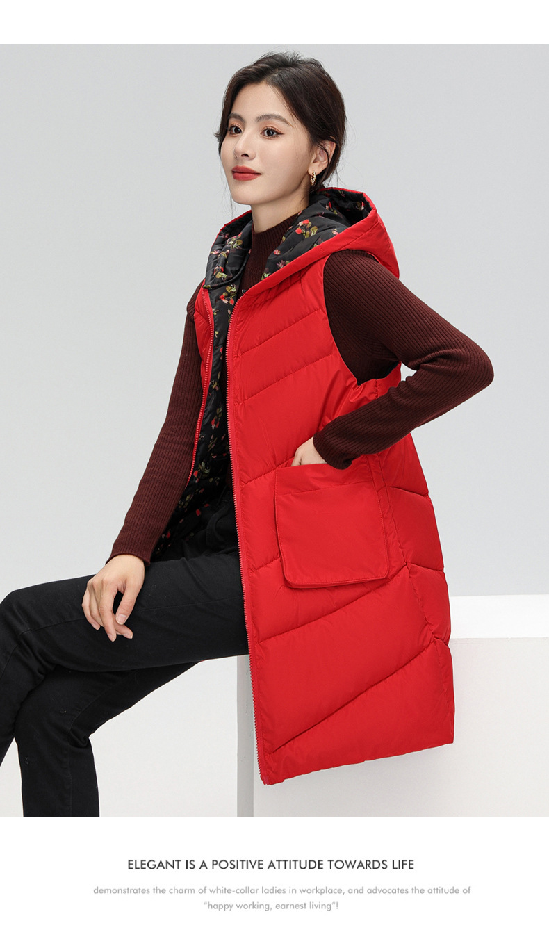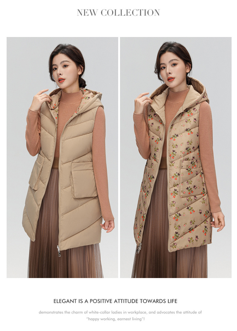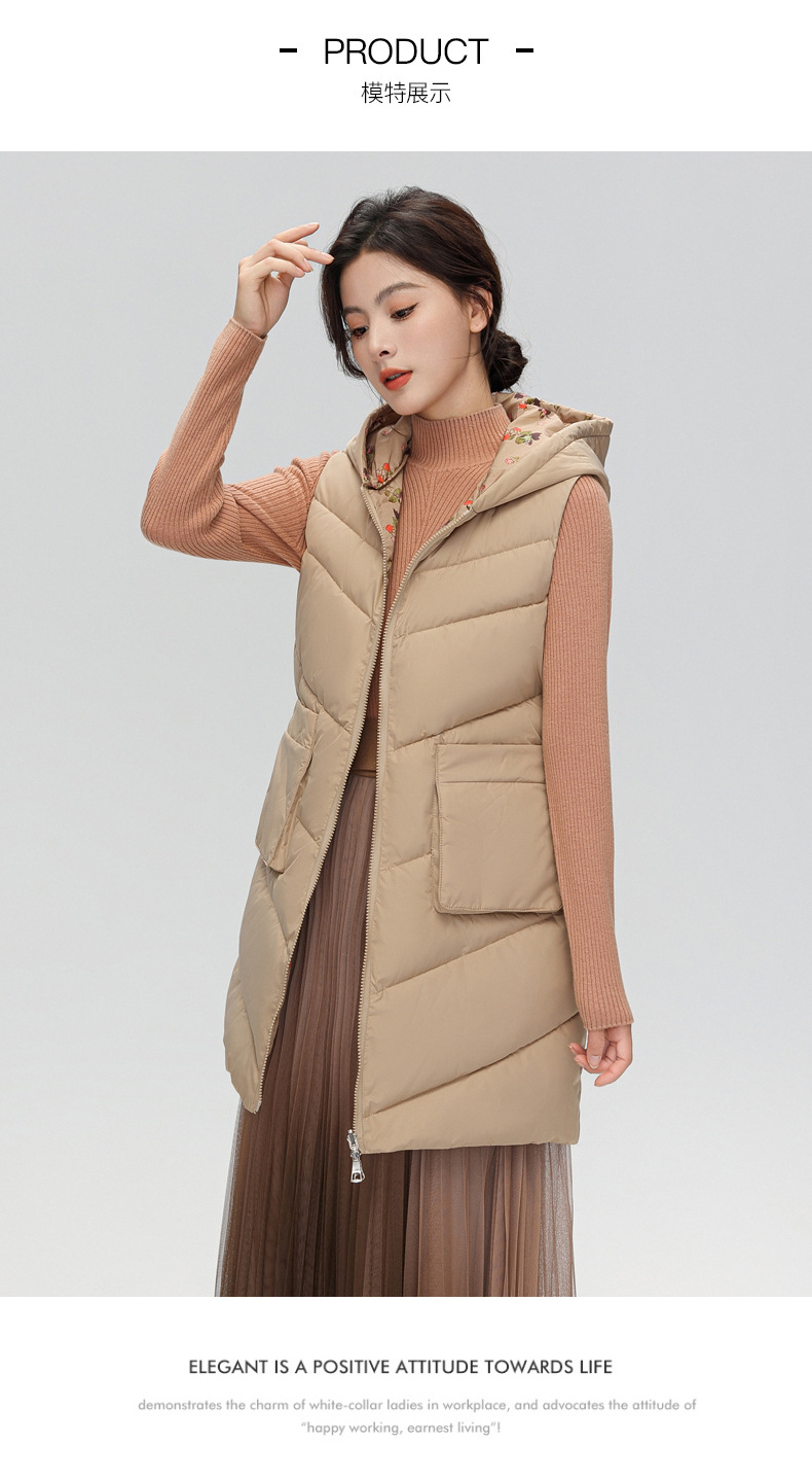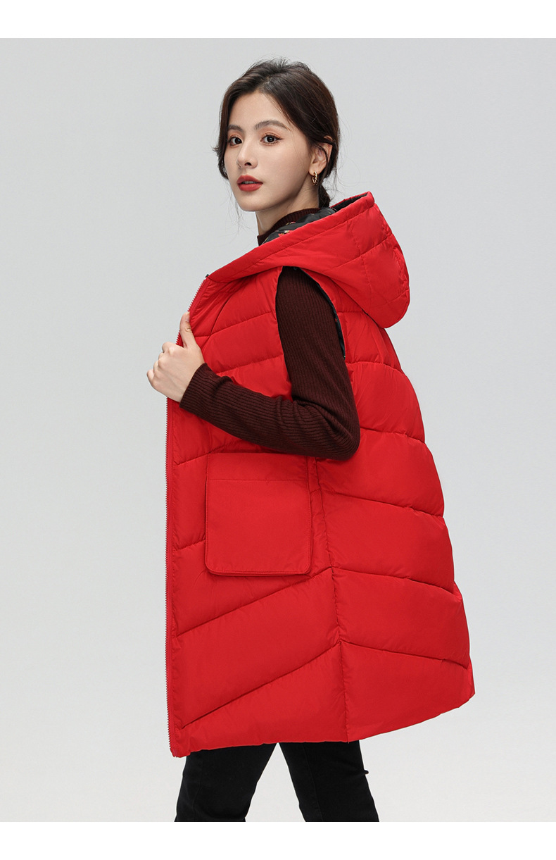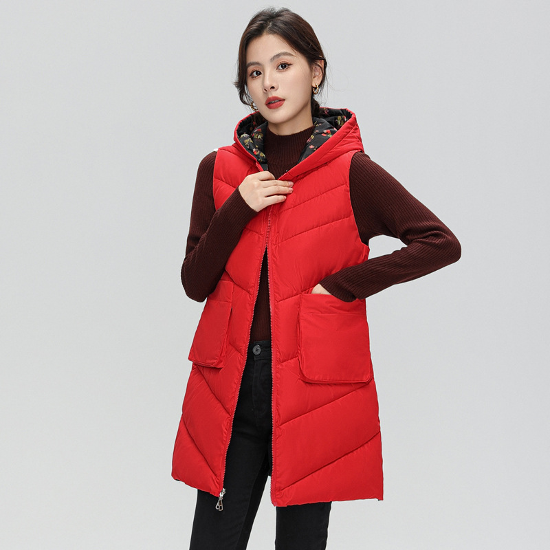 양면 착용 가능한 후드 면 조끼, 따뜻한 가을 겨울 여성용 중간 길이 2024 신상 한국 스타일 두꺼운 슬림핏 양면 착용 가능한 재킷
