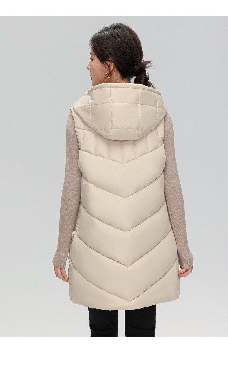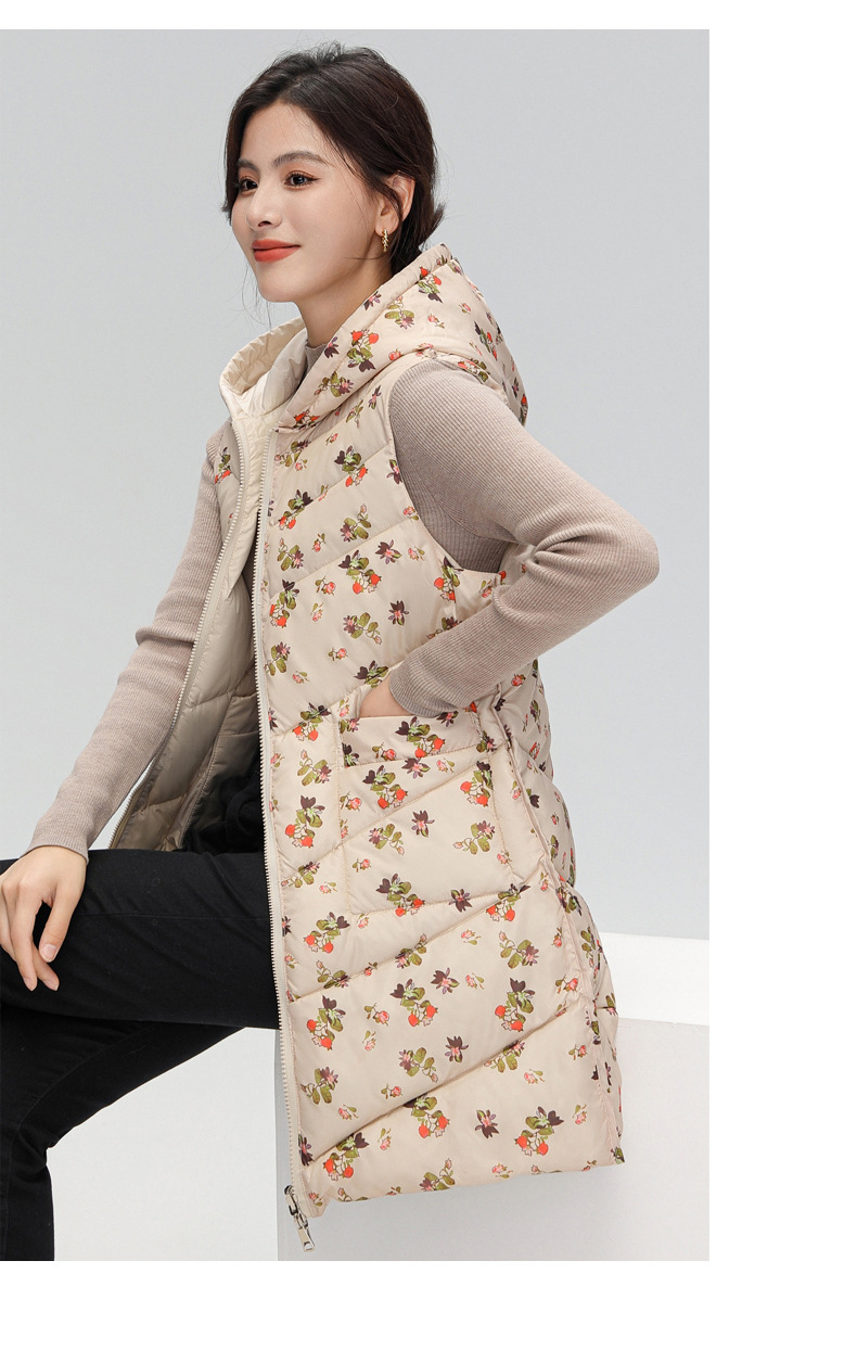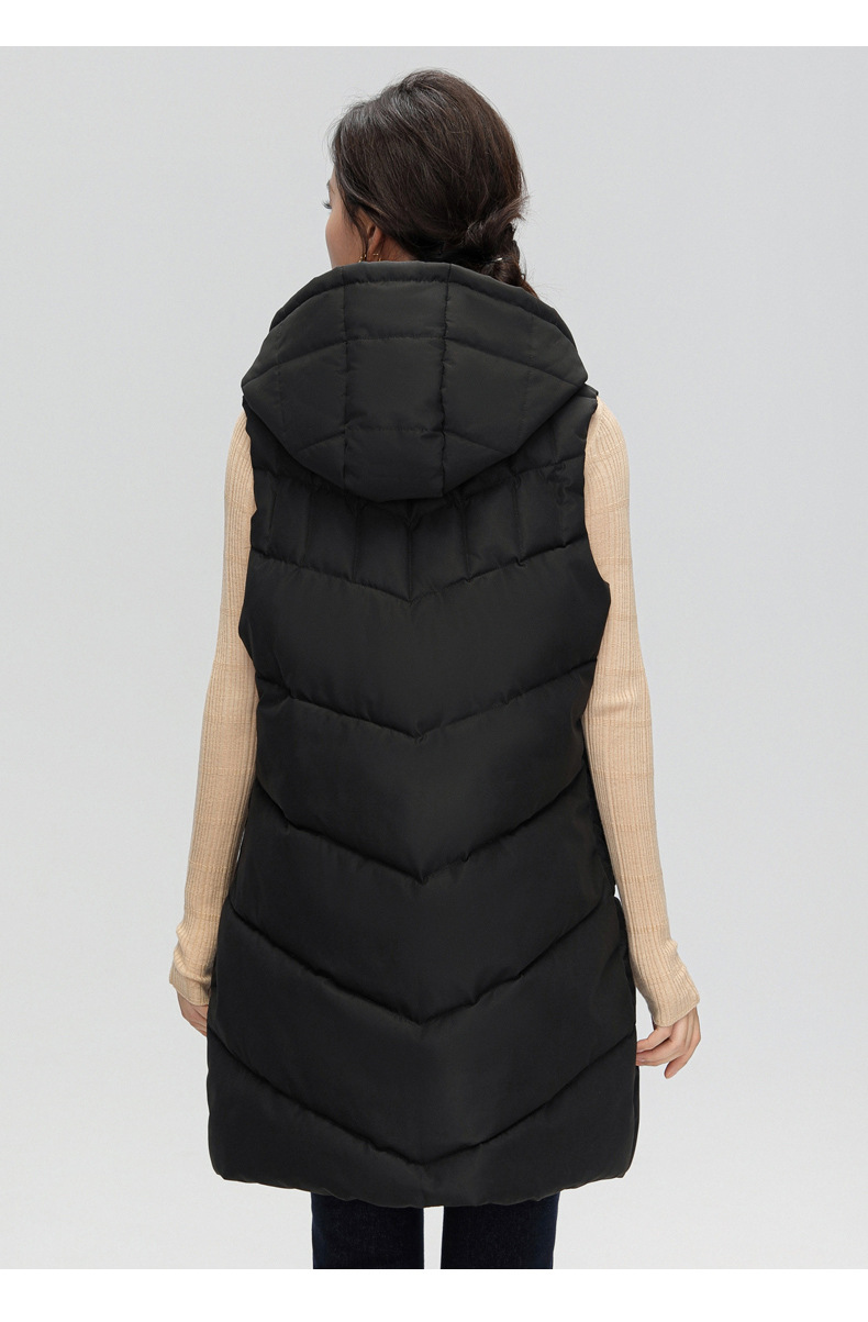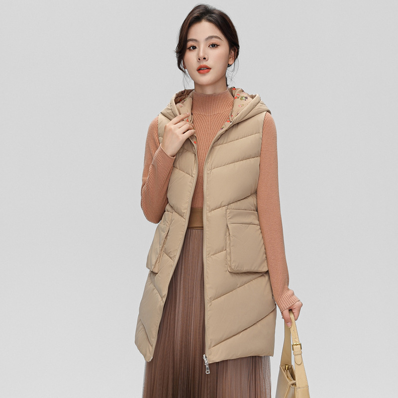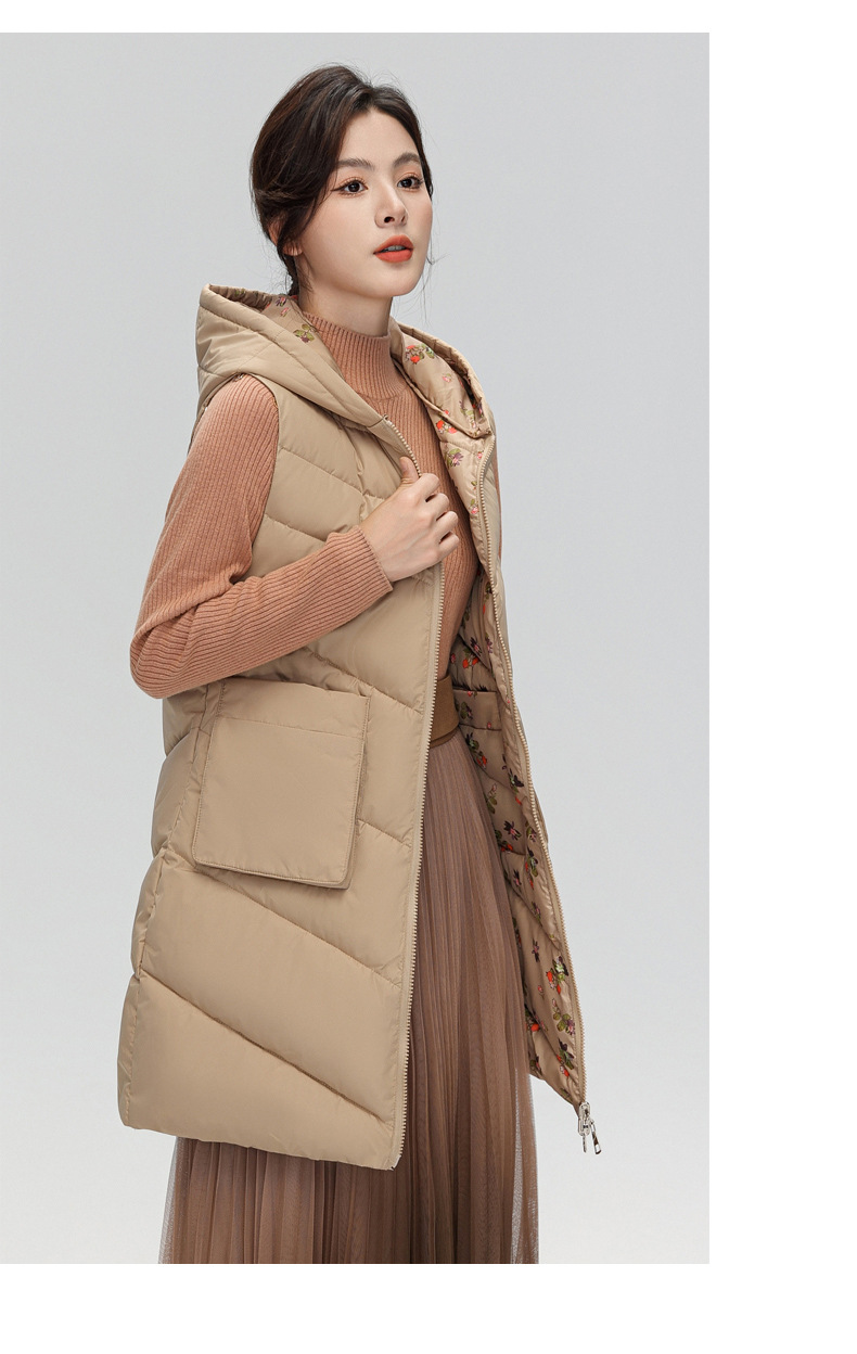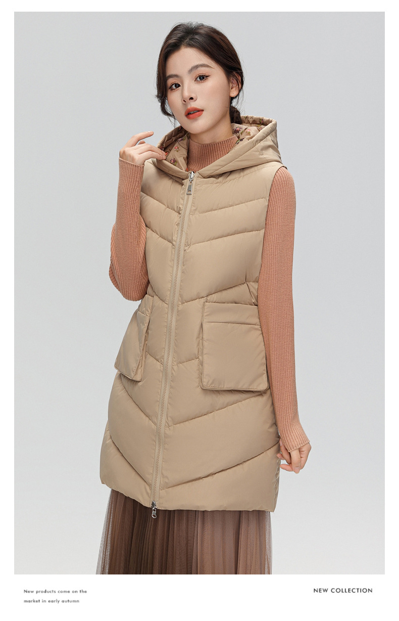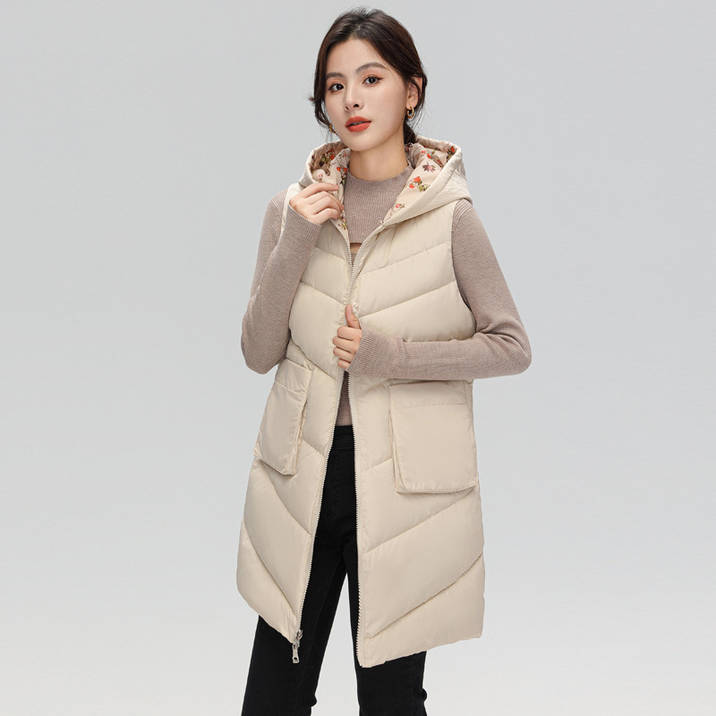 양면 착용 가능한 후드 면 조끼, 따뜻한 가을 겨울 여성용 중간 길이 2024 신상 한국 스타일 두꺼운 슬림핏 양면 착용 가능한 재킷