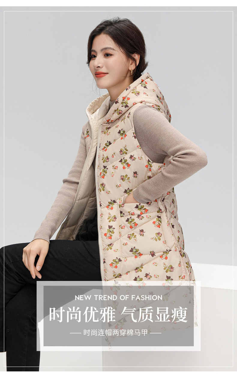 양면 착용 가능한 후드 면 조끼, 따뜻한 가을 겨울 여성용 중간 길이 2024 신상 한국 스타일 두꺼운 슬림핏 양면 착용 가능한 재킷스토어 가기