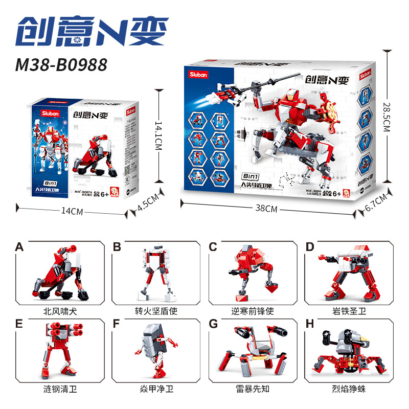 리틀 루반 조립 빌딩 블록 0988 창의력 N 변형 된 로봇 소년을 만들기 위해 갈대 말 가드스토어 가기