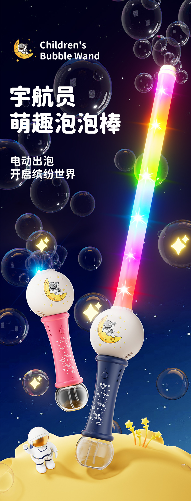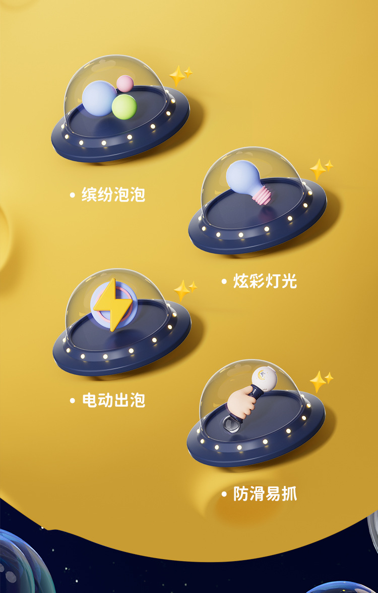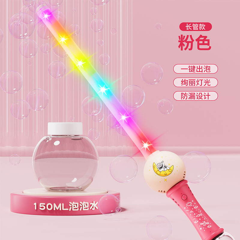 공간 어린이 만화 전기 거품 부는 스틱 버블 기계 음향 효과 라이트 나이트 마켓 스톨 상품 작은 장난감 도매스토어 가기