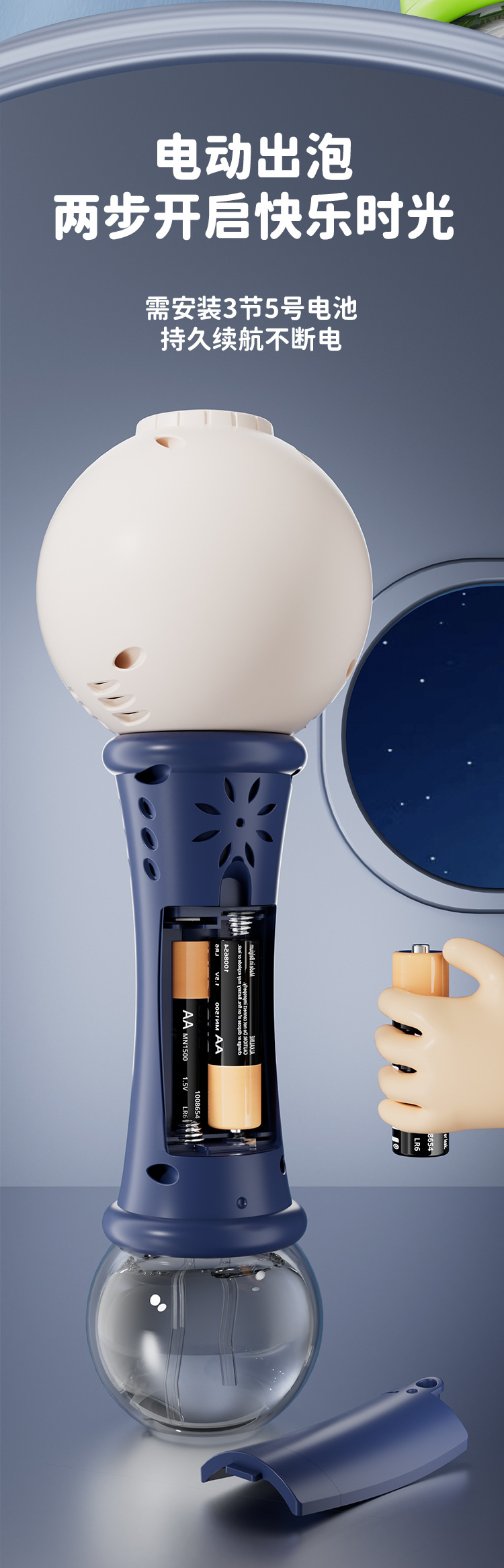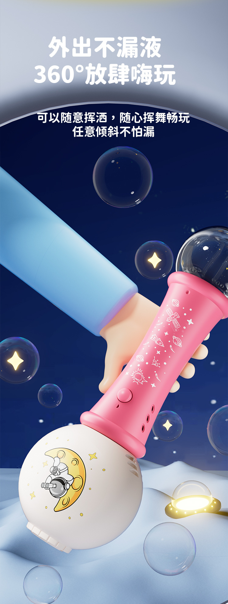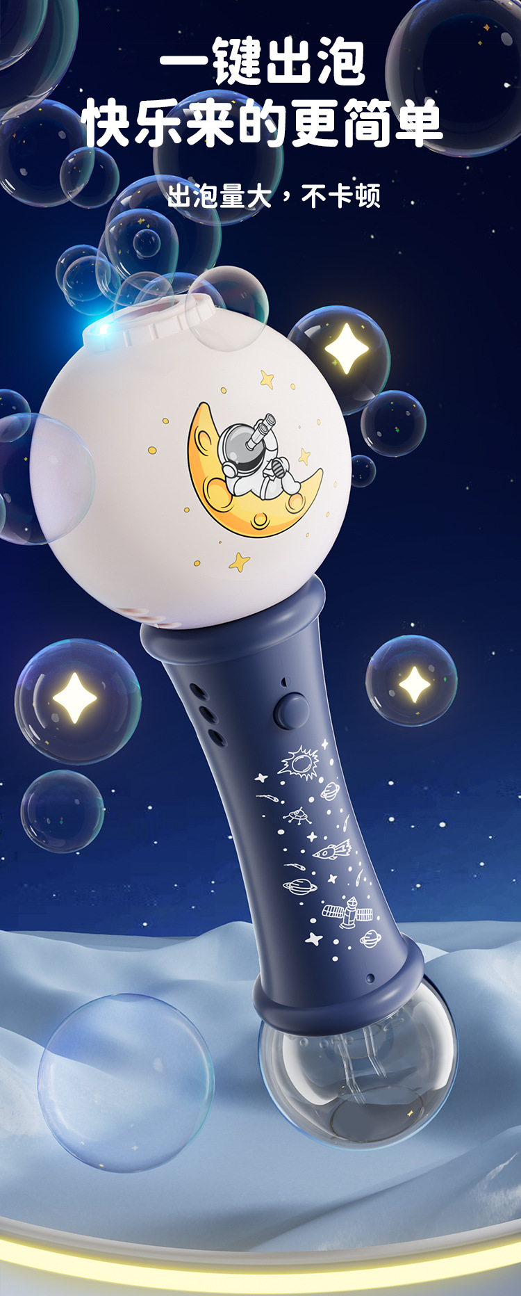 공간 어린이 만화 전기 거품 부는 스틱 버블 기계 음향 효과 라이트 나이트 마켓 스톨 상품 작은 장난감 도매스토어 가기