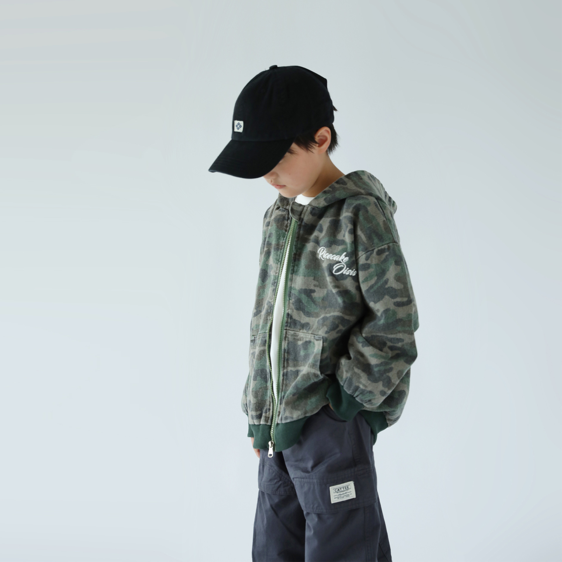 字母印花搭配好看的迷彩底布色,满满的活力范,