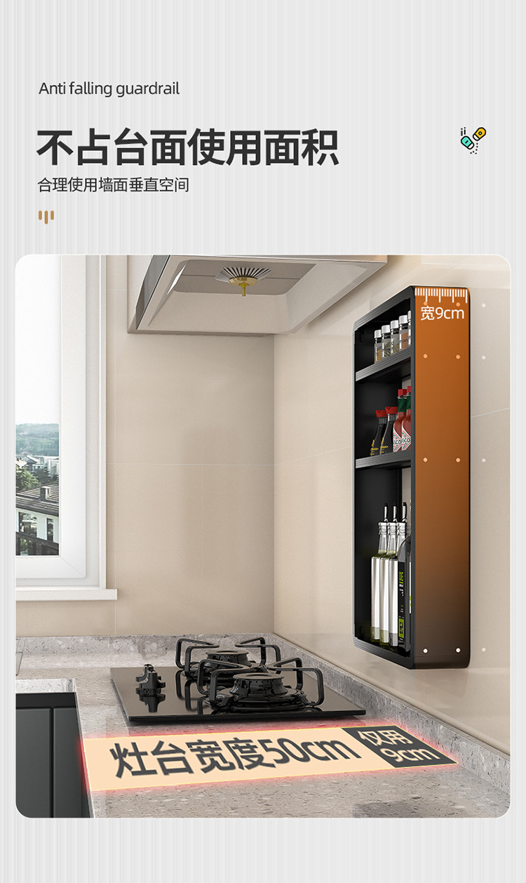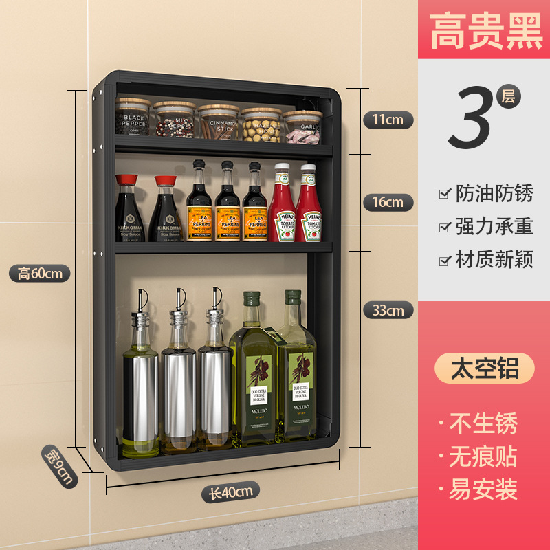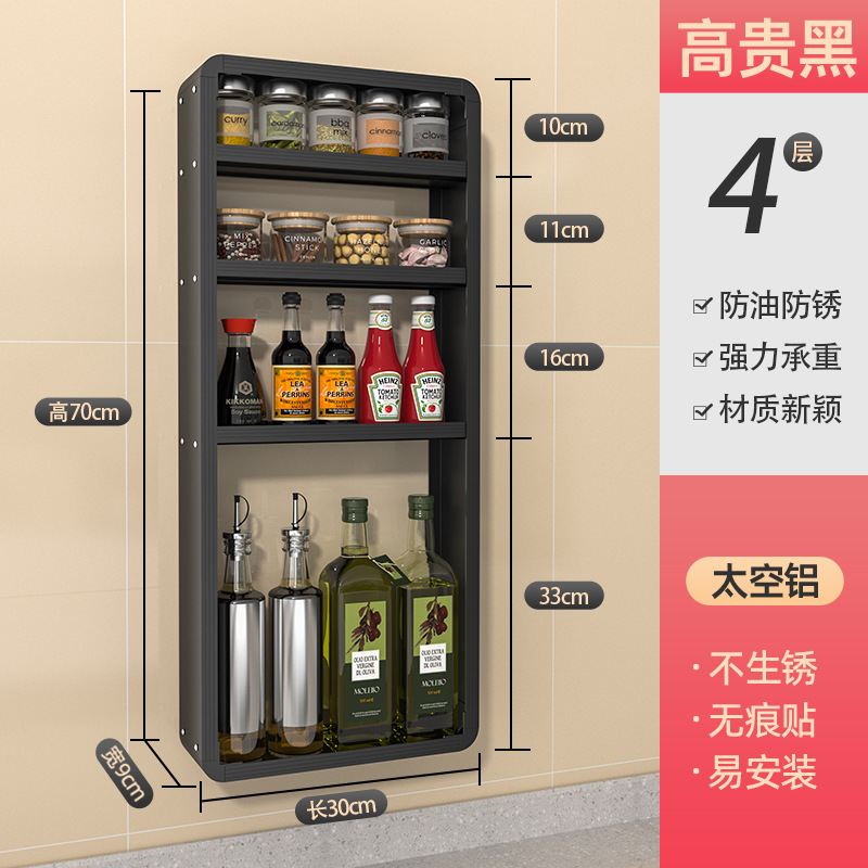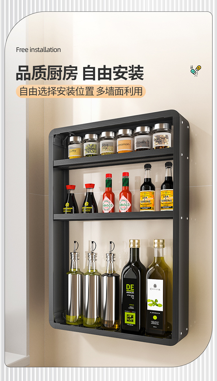 주방 선반 벽걸이 형 천공 오일, 소금, 소스 및 식초 보관 벽걸이형 다기능 조미료 항아리 조미료 상자스토어 가기