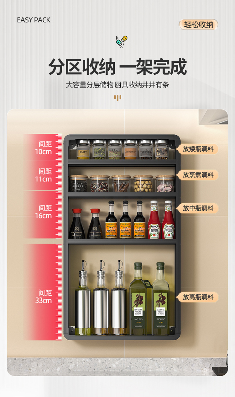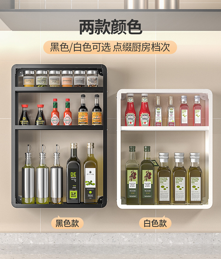 주방 선반 벽걸이 형 천공 오일, 소금, 소스 및 식초 보관 벽걸이형 다기능 조미료 항아리 조미료 상자