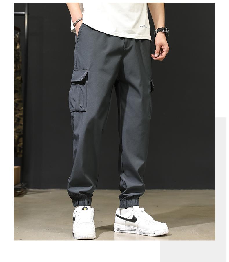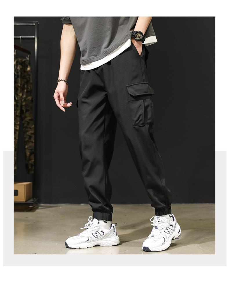 바지 바지 남자의 여름 아이스 실크 발목 길이 바지 느슨한 남자의 바지 플러스 사이즈 여름 얇은 다리 발가락 스포츠 바지 남자의 유행