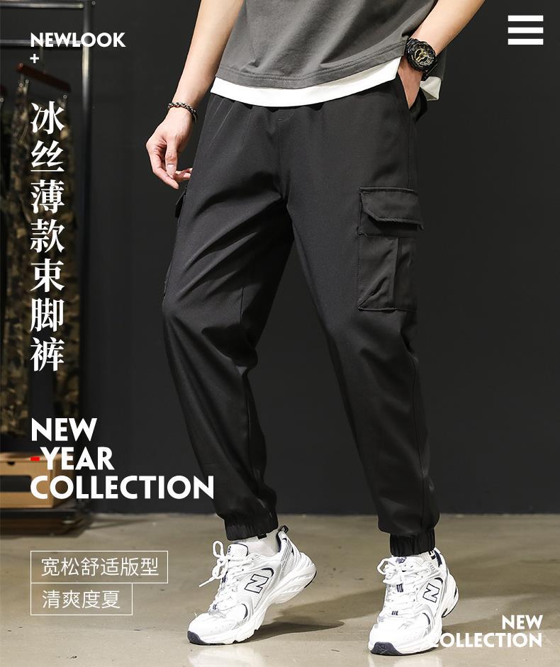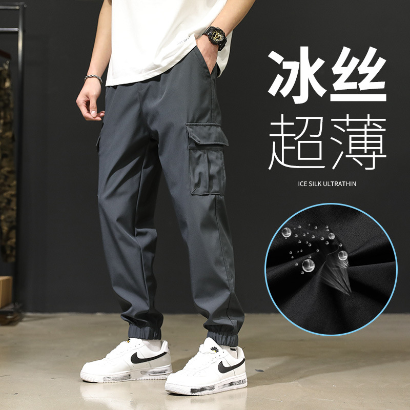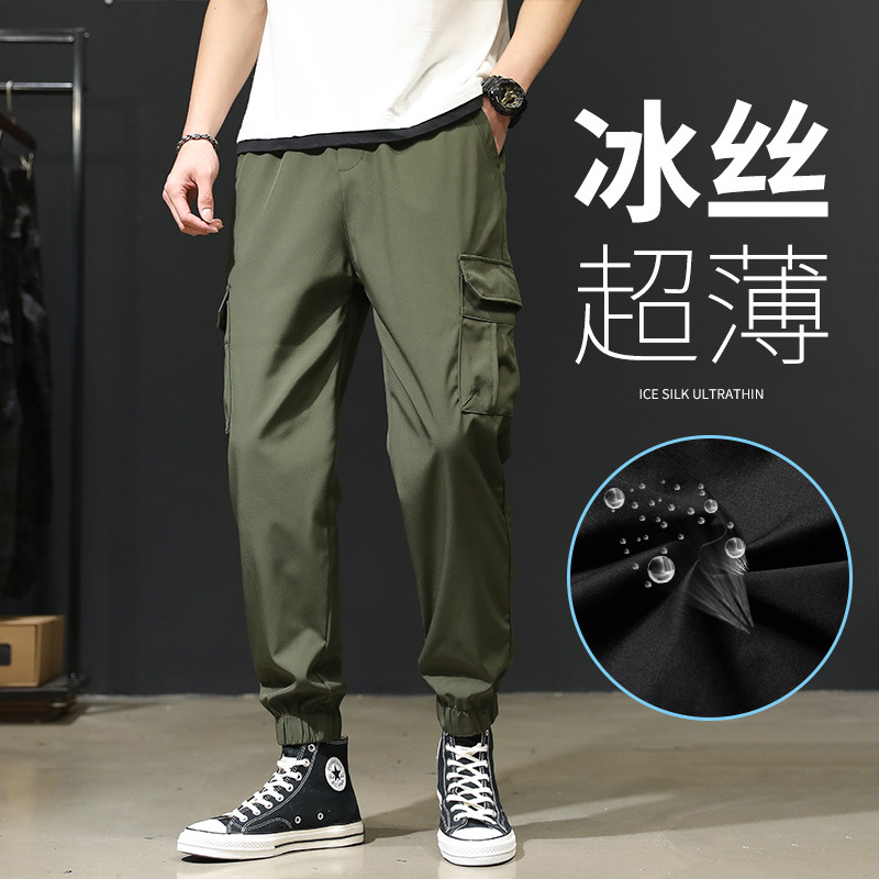 바지 바지 남자의 여름 아이스 실크 발목 길이 바지 느슨한 남자의 바지 플러스 사이즈 여름 얇은 다리 발가락 스포츠 바지 남자의 유행스토어 가기