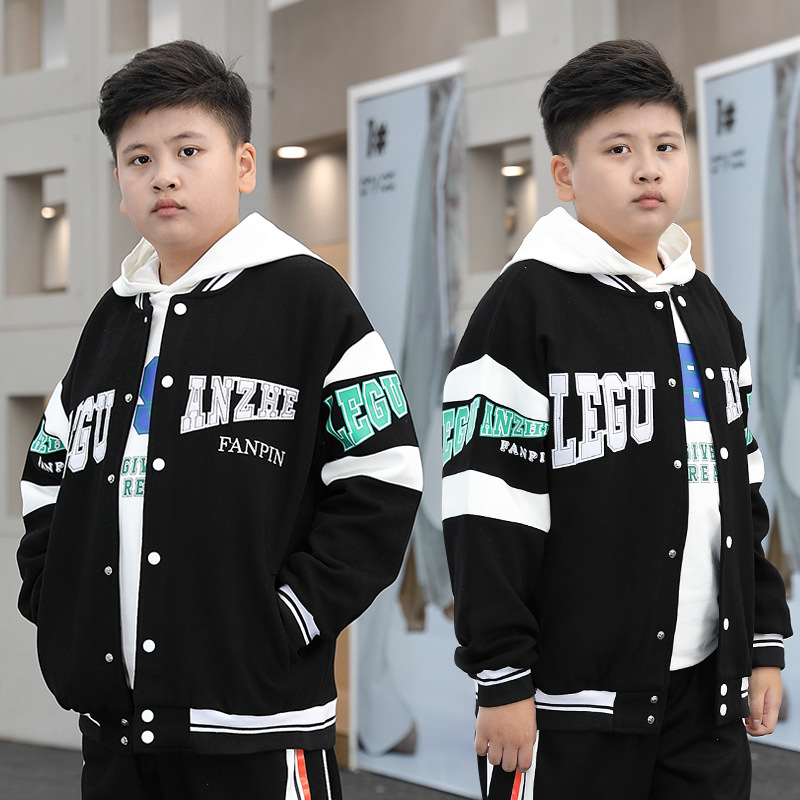뚱뚱한 소년 야구 세트 코트 플러스 뚱뚱한 플러스 사이즈 봄과 가을 뚱뚱한 소년 느슨한 플러스 사이즈 캐주얼 재킷스토어 가기