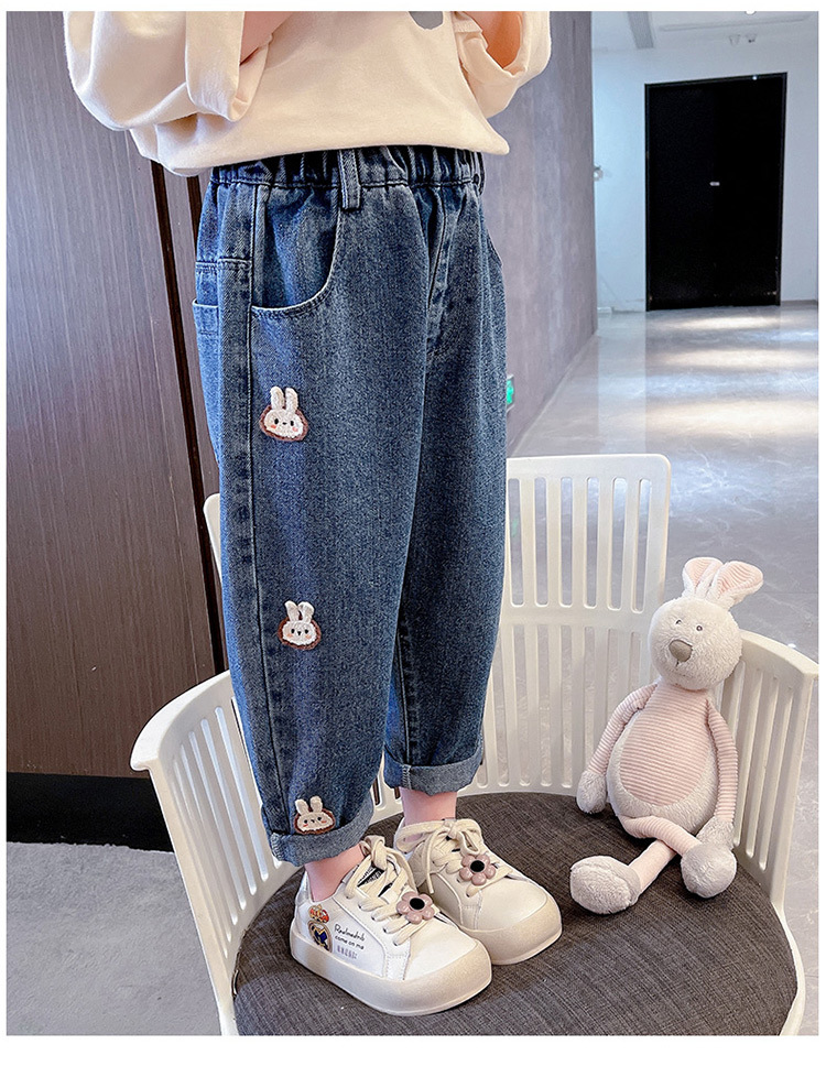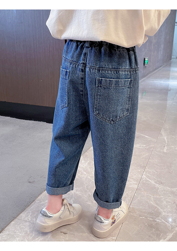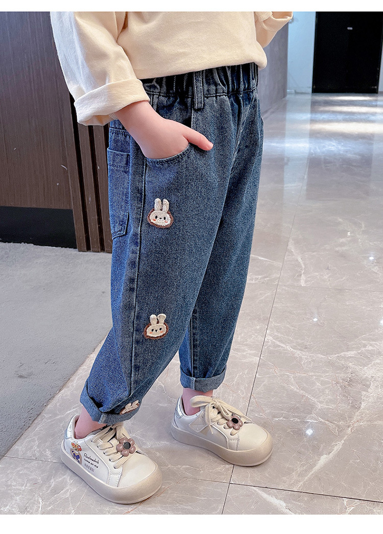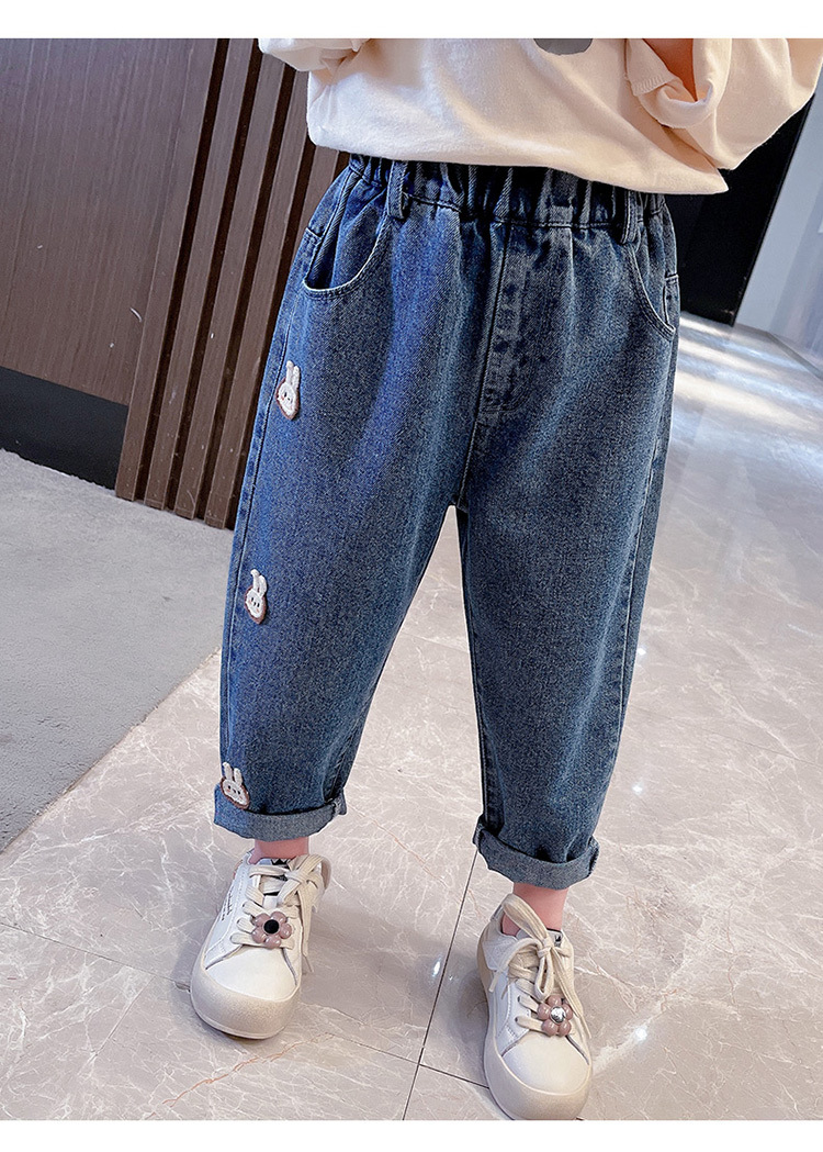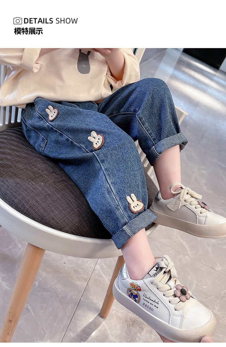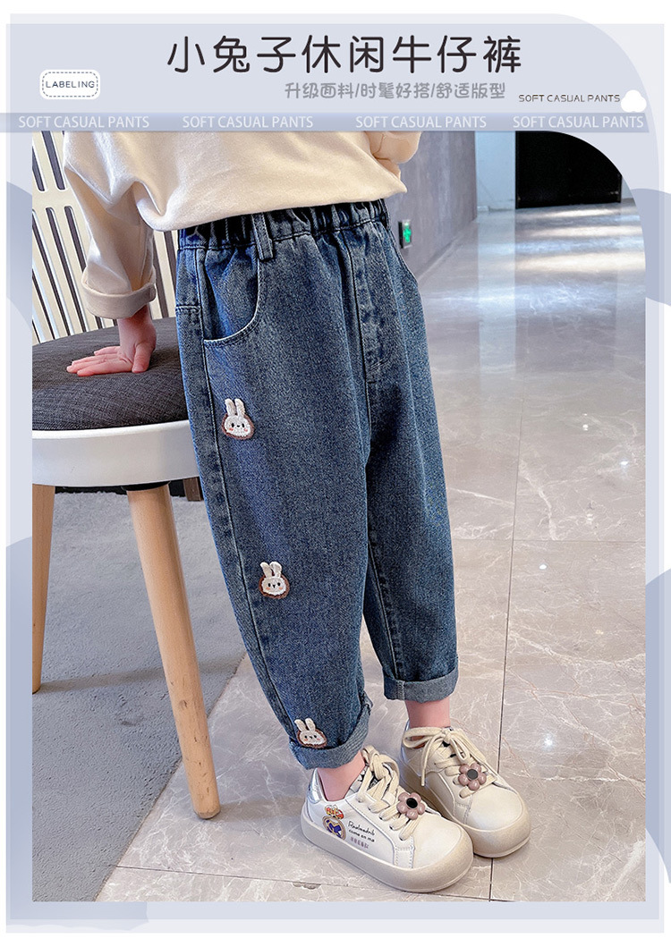 여아 청바지 가을 2023 새로운 스타일 웨스턴 스타일 느슨한 아기 얇은 바지 어린이 캐주얼 가을 유행 바지스토어 가기