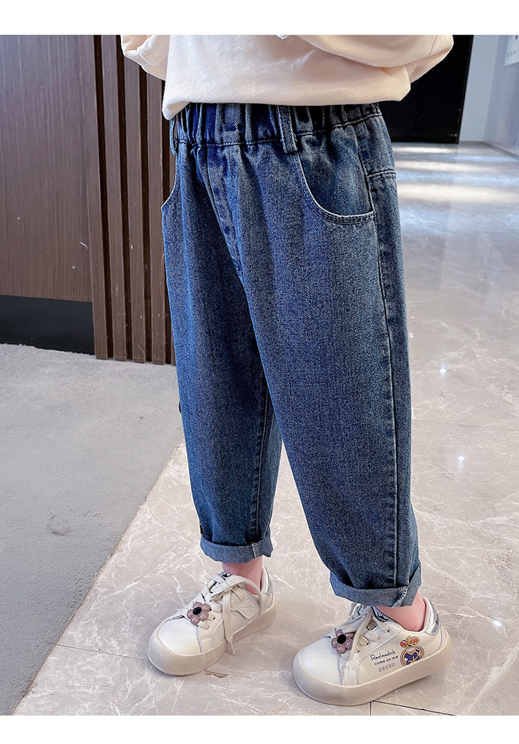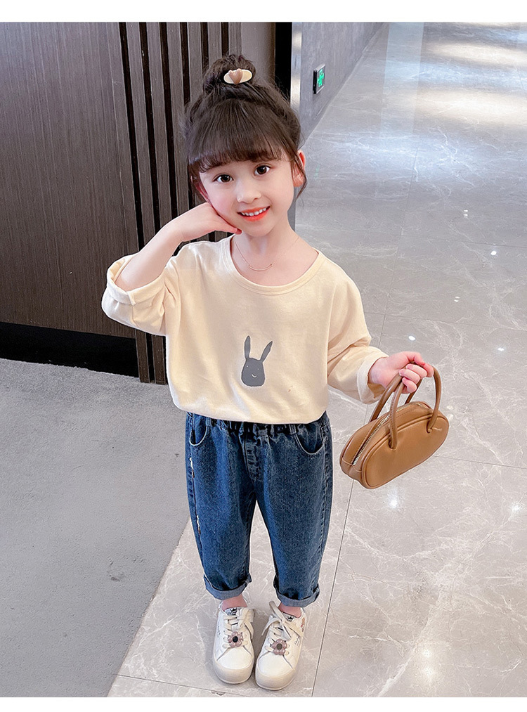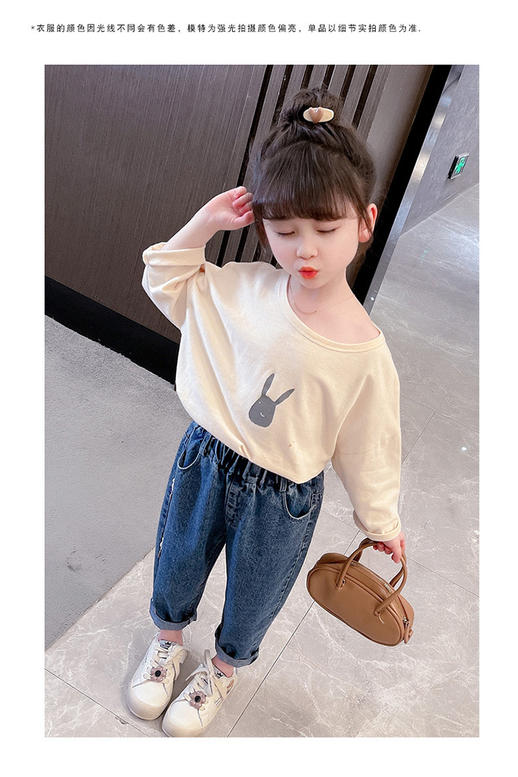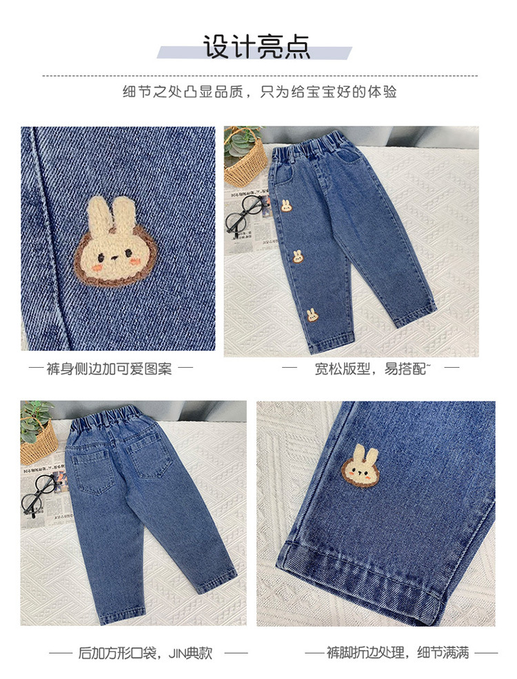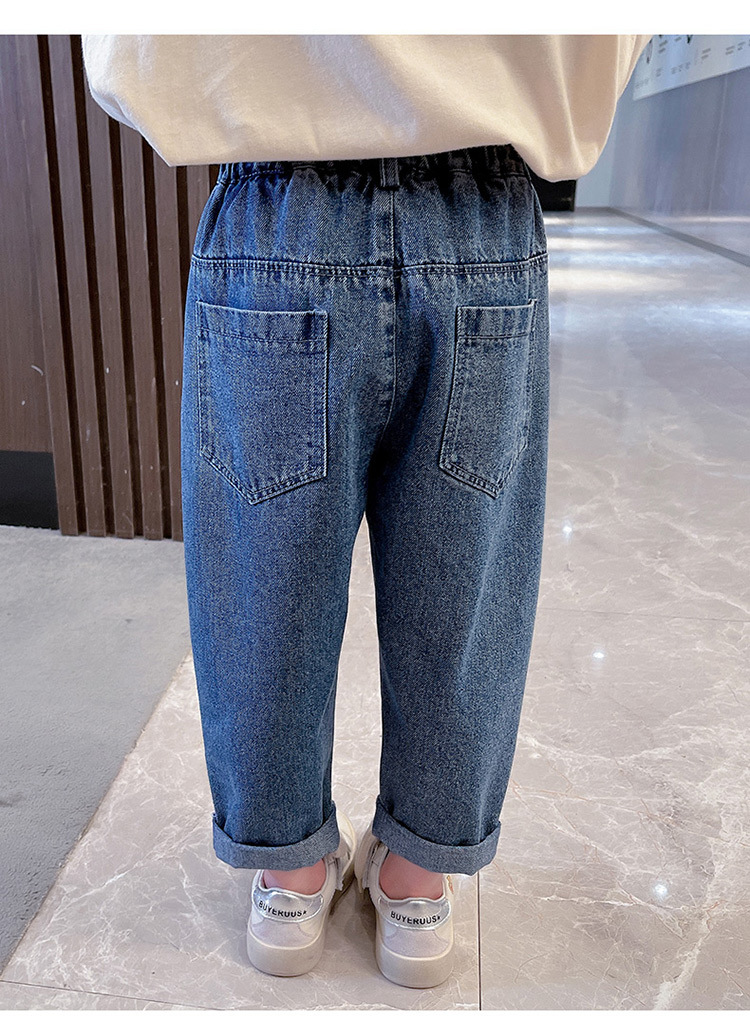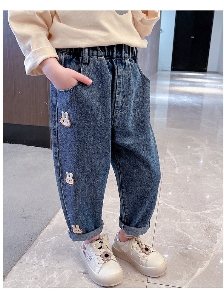여아 청바지 가을 2023 새로운 스타일 웨스턴 스타일 느슨한 아기 얇은 바지 어린이 캐주얼 가을 유행 바지스토어 가기