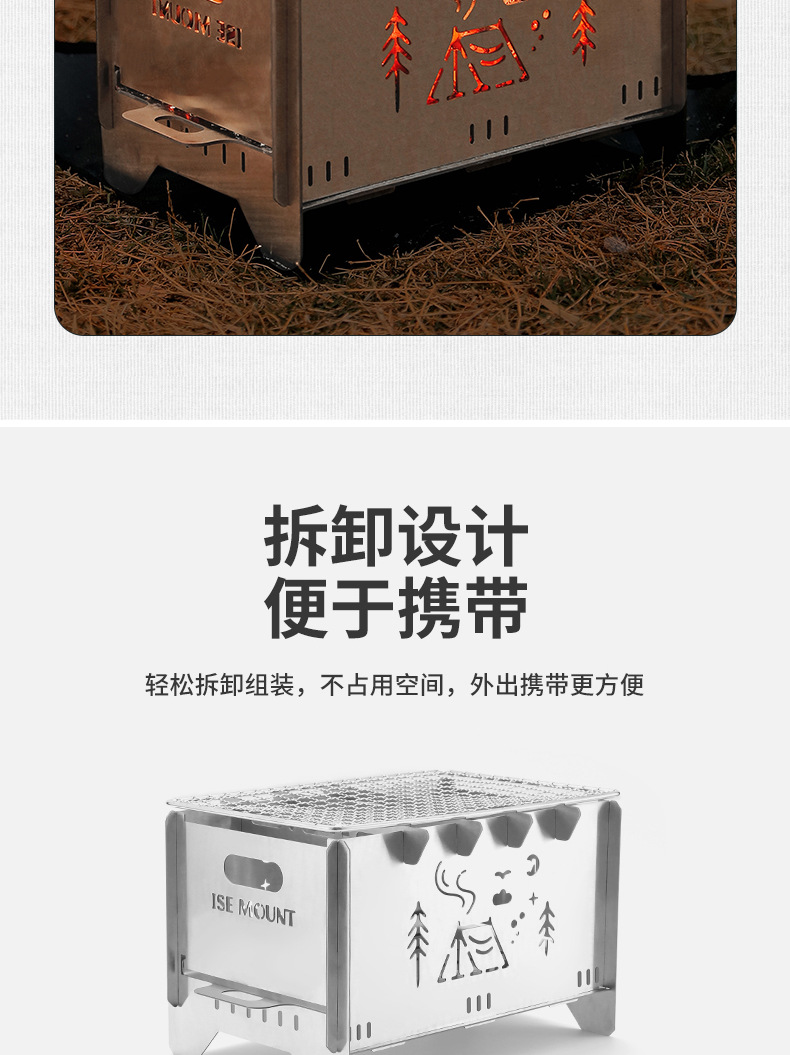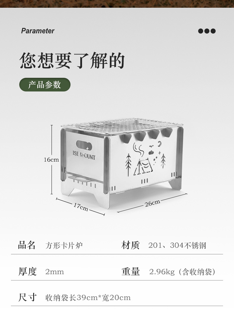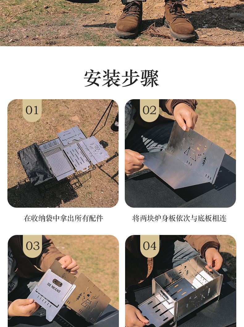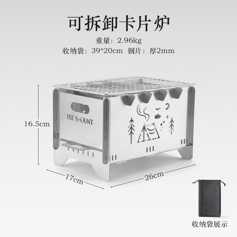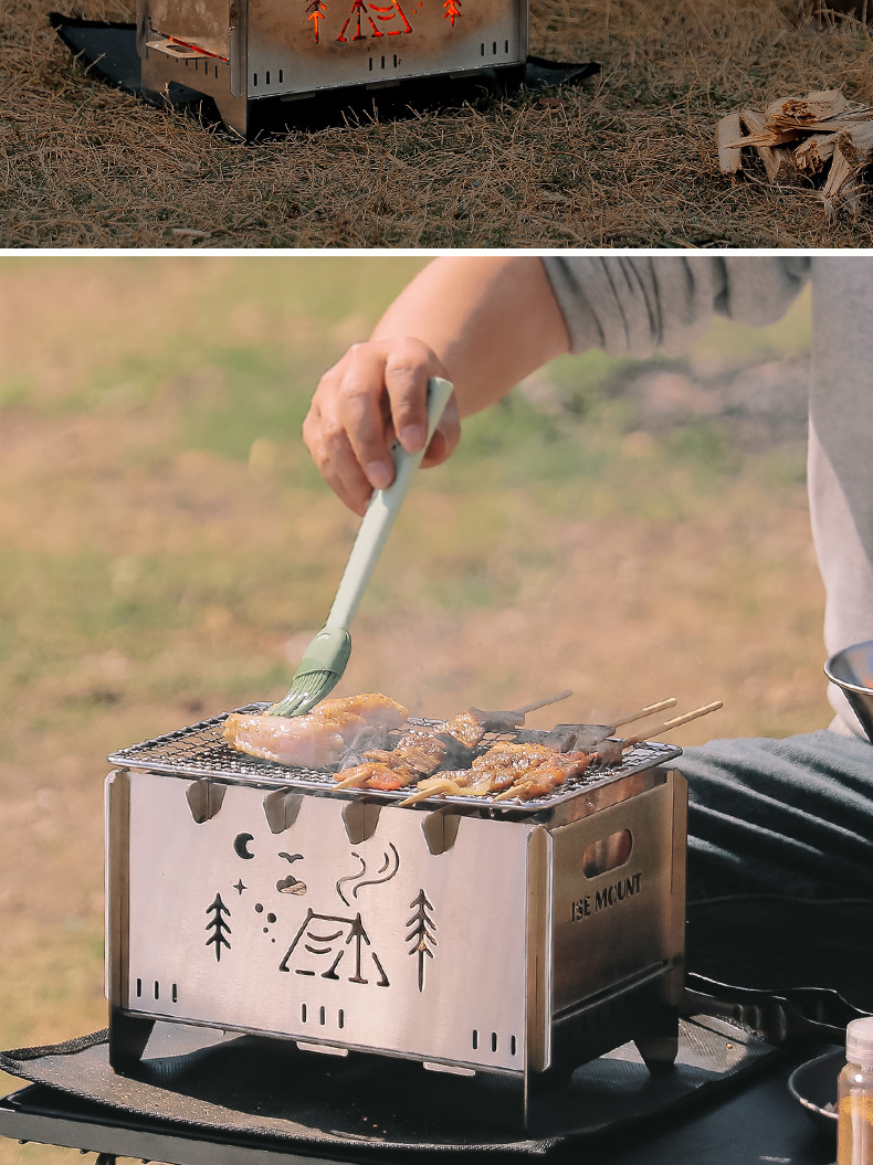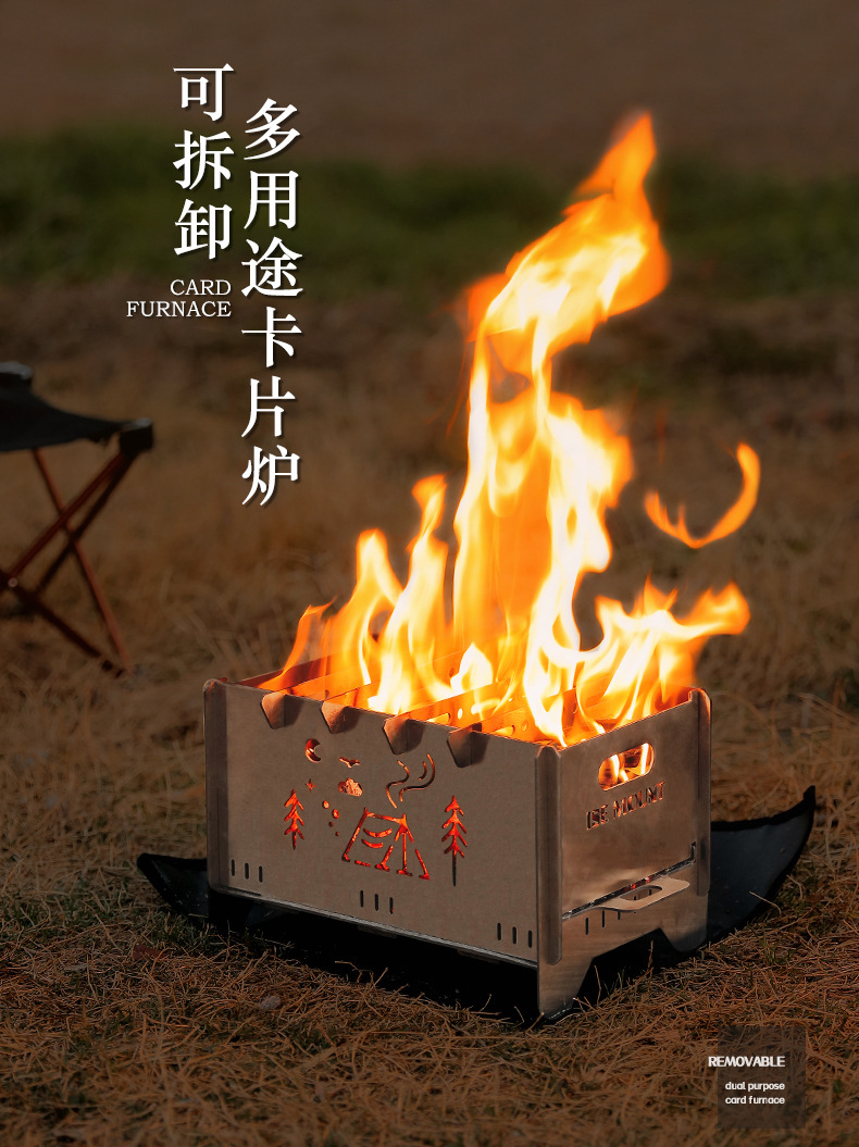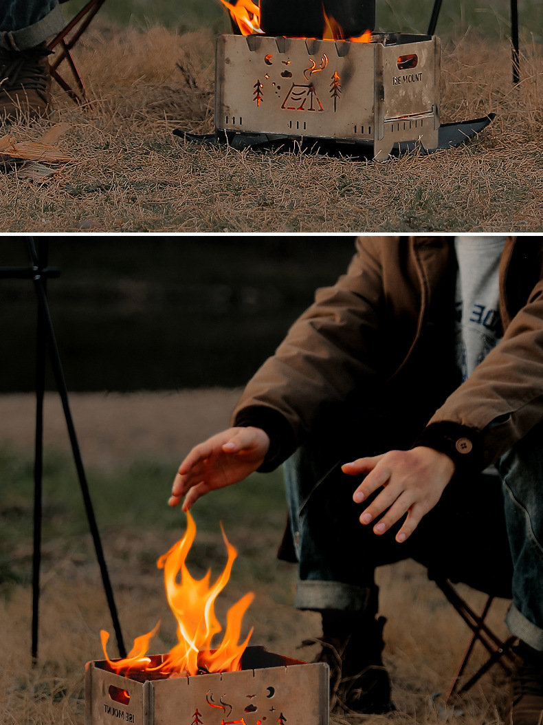 야외 접이식 바베큐 스토브 스테인레스 스틸 카드 스토브 모닥불 스토브 휴대용 캠핑 난방 스토브 불타는 테이블 장작 스토브