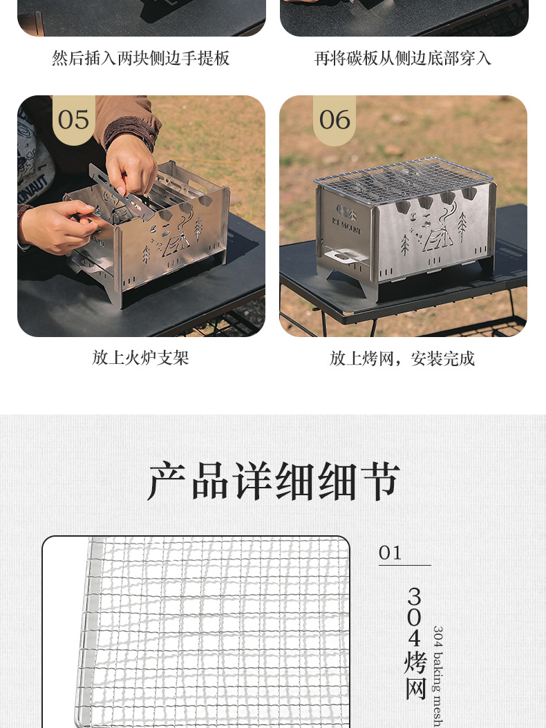 야외 접이식 바베큐 스토브 스테인레스 스틸 카드 스토브 모닥불 스토브 휴대용 캠핑 난방 스토브 불타는 테이블 장작 스토브스토어 가기