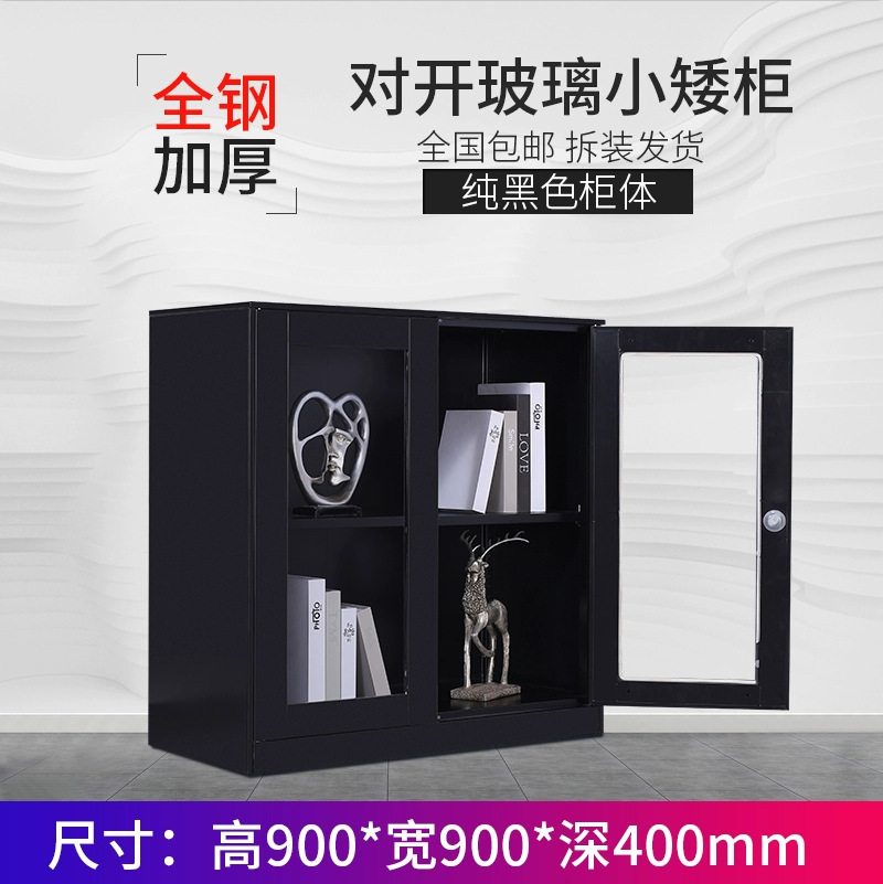 • 유리 도어가있는 낮은 캐비닛 (순수한 검정색)