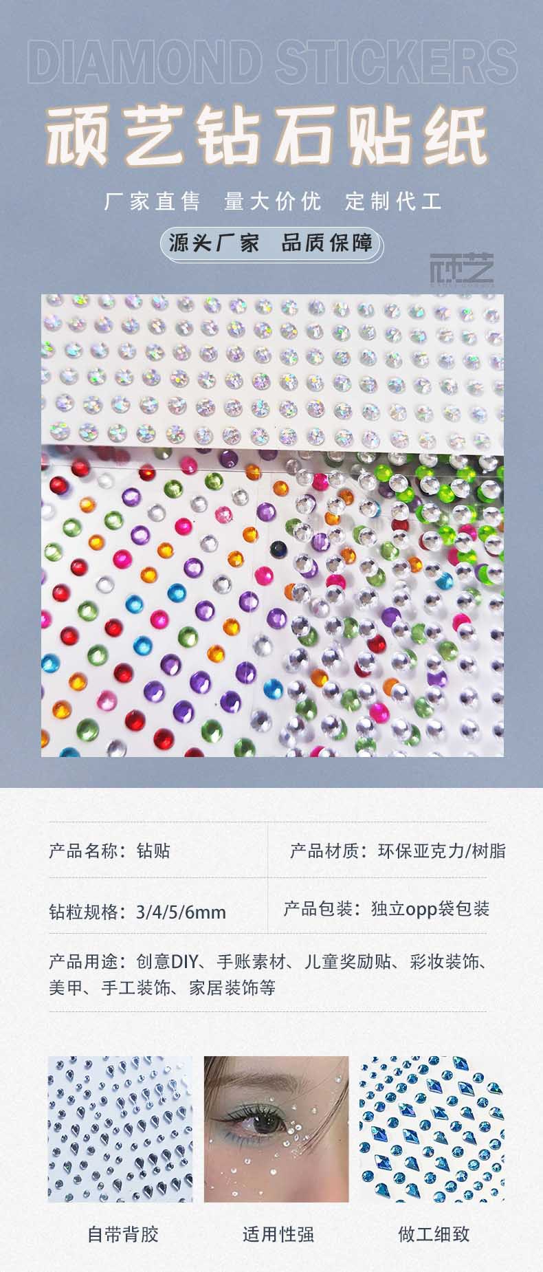 핫 450 3mm 어린이 DIY 다채로운 아크릴 다이아몬드 스티커 크리스탈 스티커 밝은 다이아몬드 다이아몬드 드릴 얼굴 장식