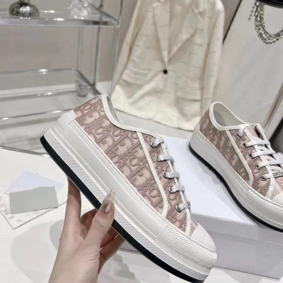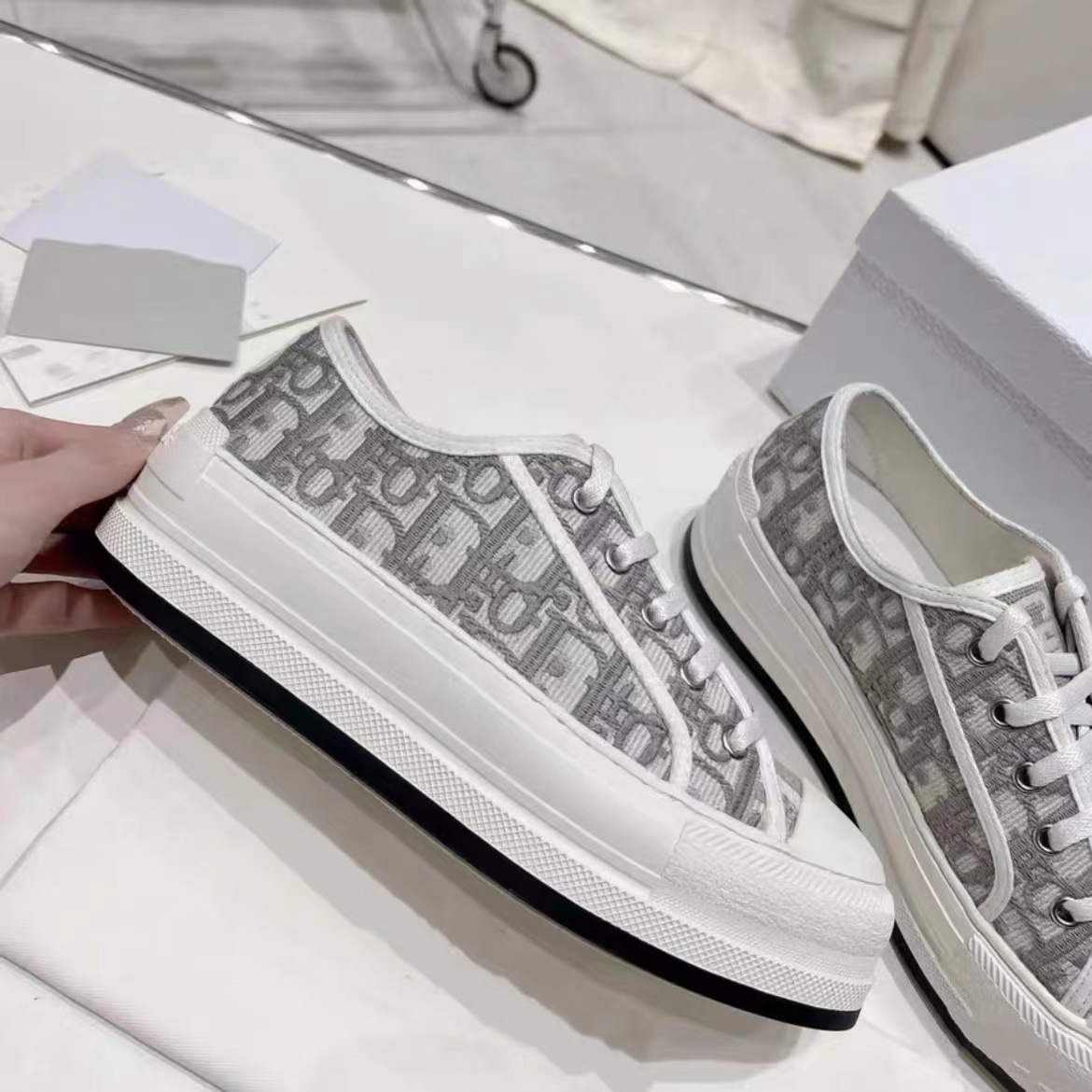 여성을위한 D의 수 놓은 캔버스 신발 2023 새로운 인터넷 연예인 레이스 업 흰색 신발 두꺼운 밑창 캐주얼 스포츠 하이힐 스니커즈스토어 가기