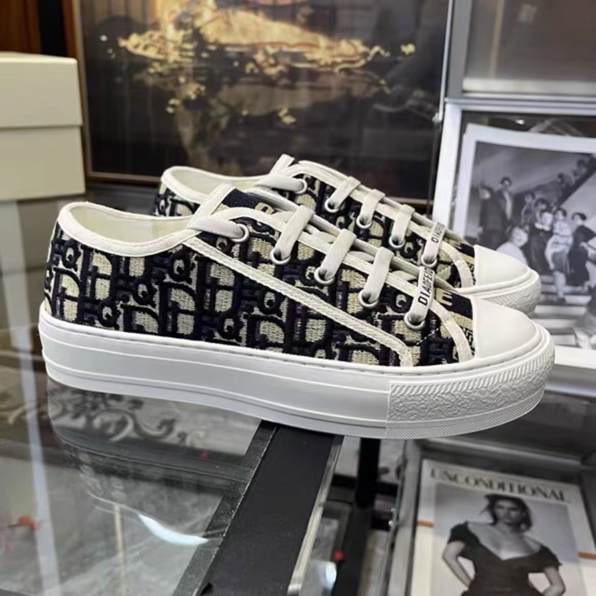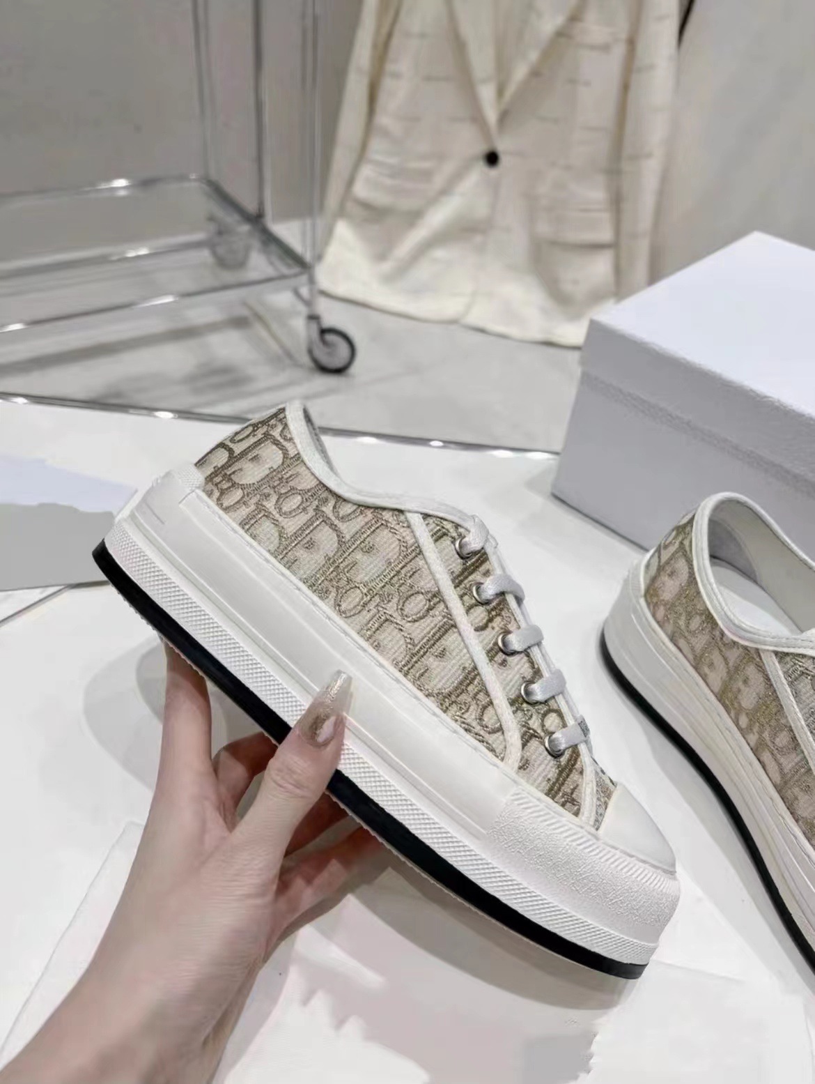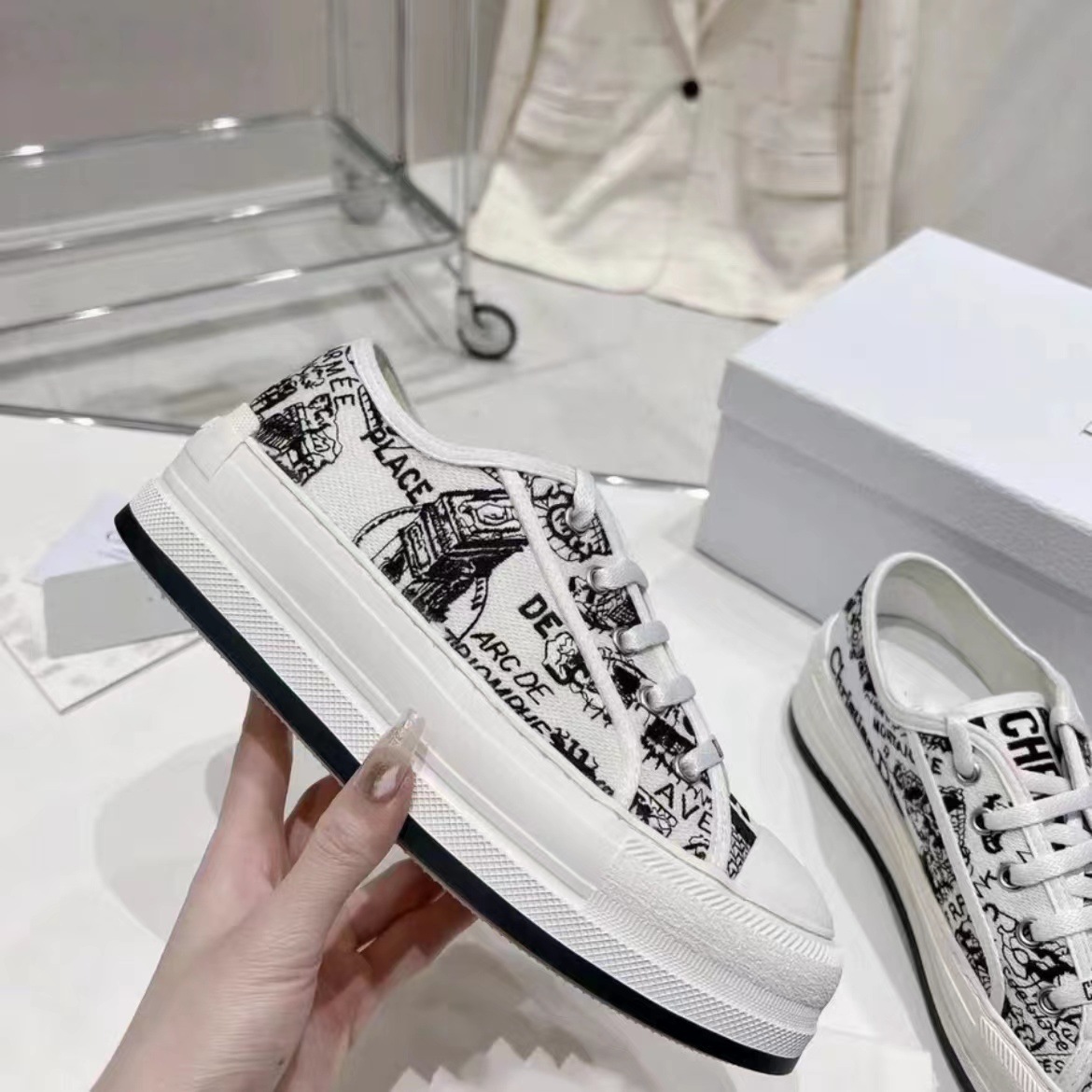 여성을위한 D의 수 놓은 캔버스 신발 2023 새로운 인터넷 연예인 레이스 업 흰색 신발 두꺼운 밑창 캐주얼 스포츠 하이힐 스니커즈