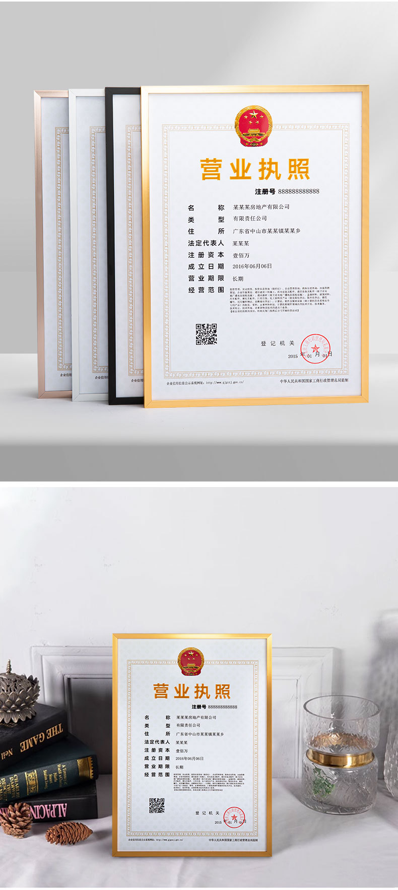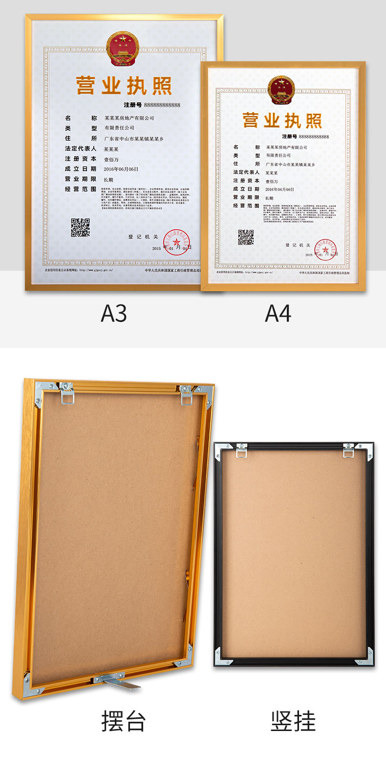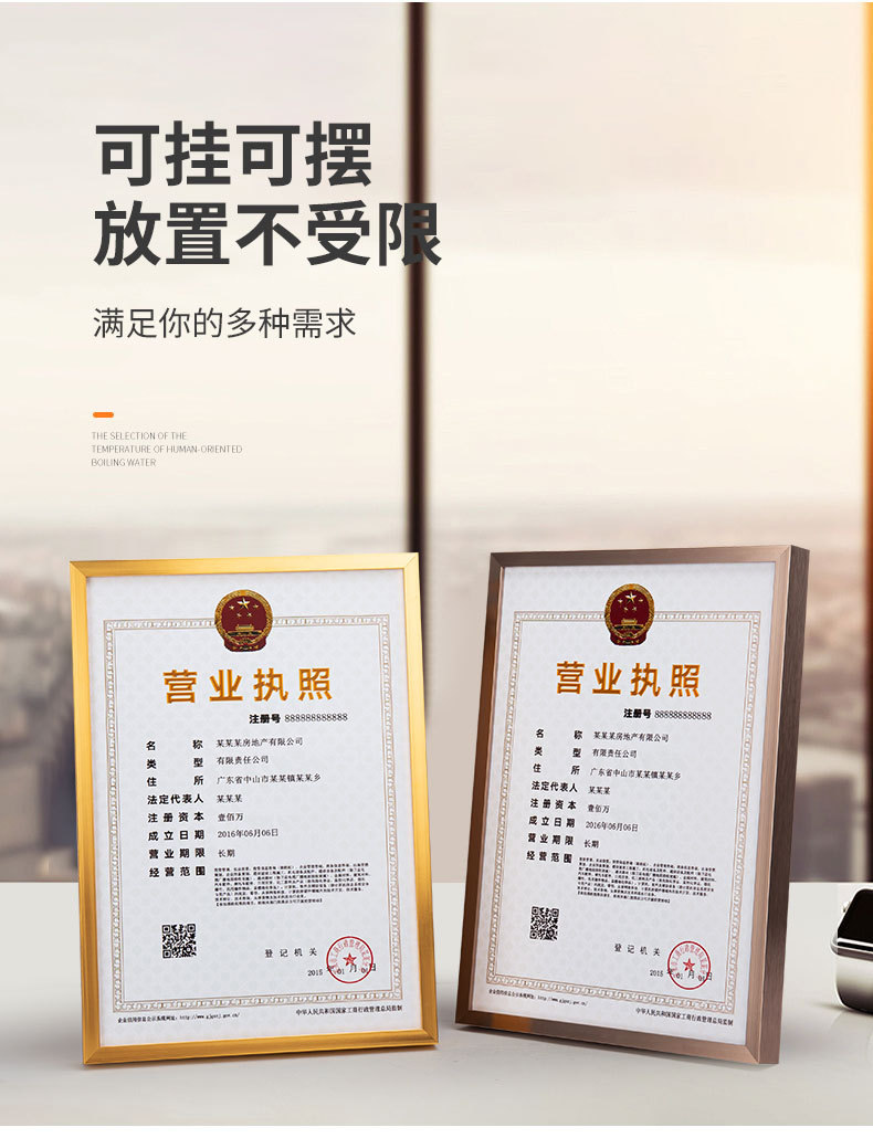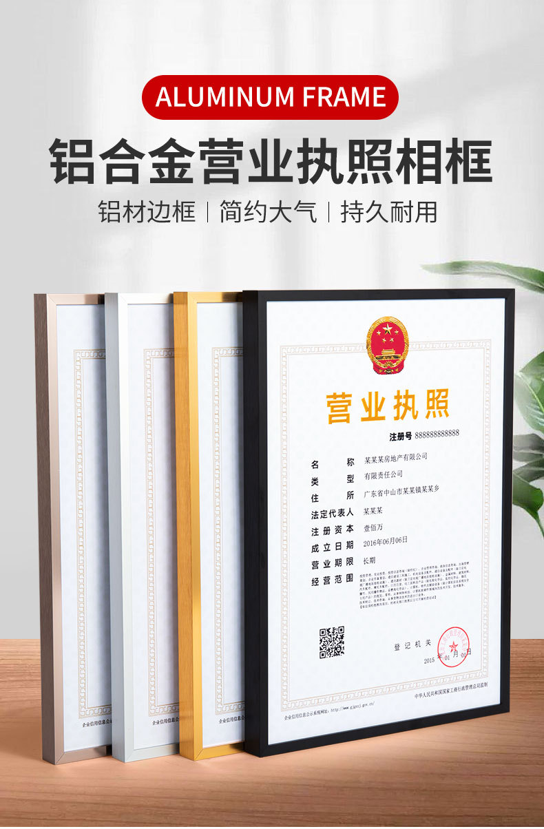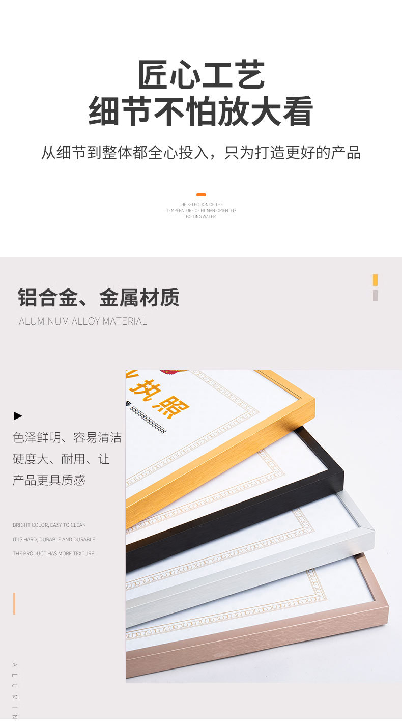 알루미늄 합금 사진 프레임 액자 액자 벽걸이 금속 사업 라이센스 프레임 A3A4 좁은 측면 장착 포스터 프레임 4K 제조 업체 도매스토어 가기