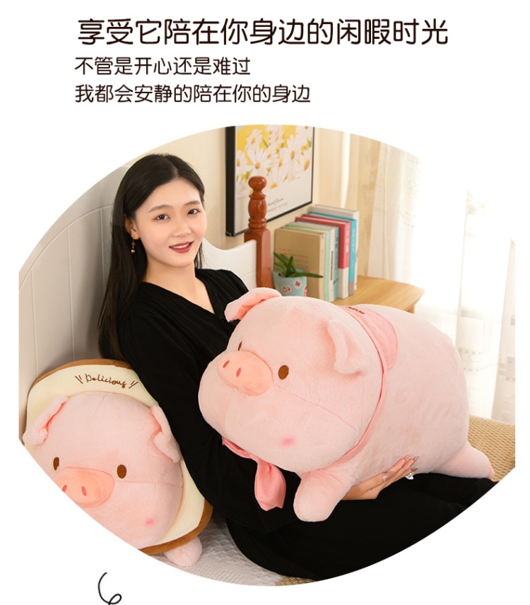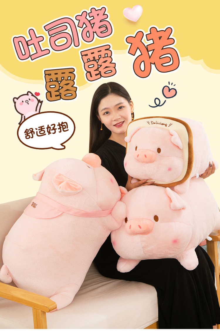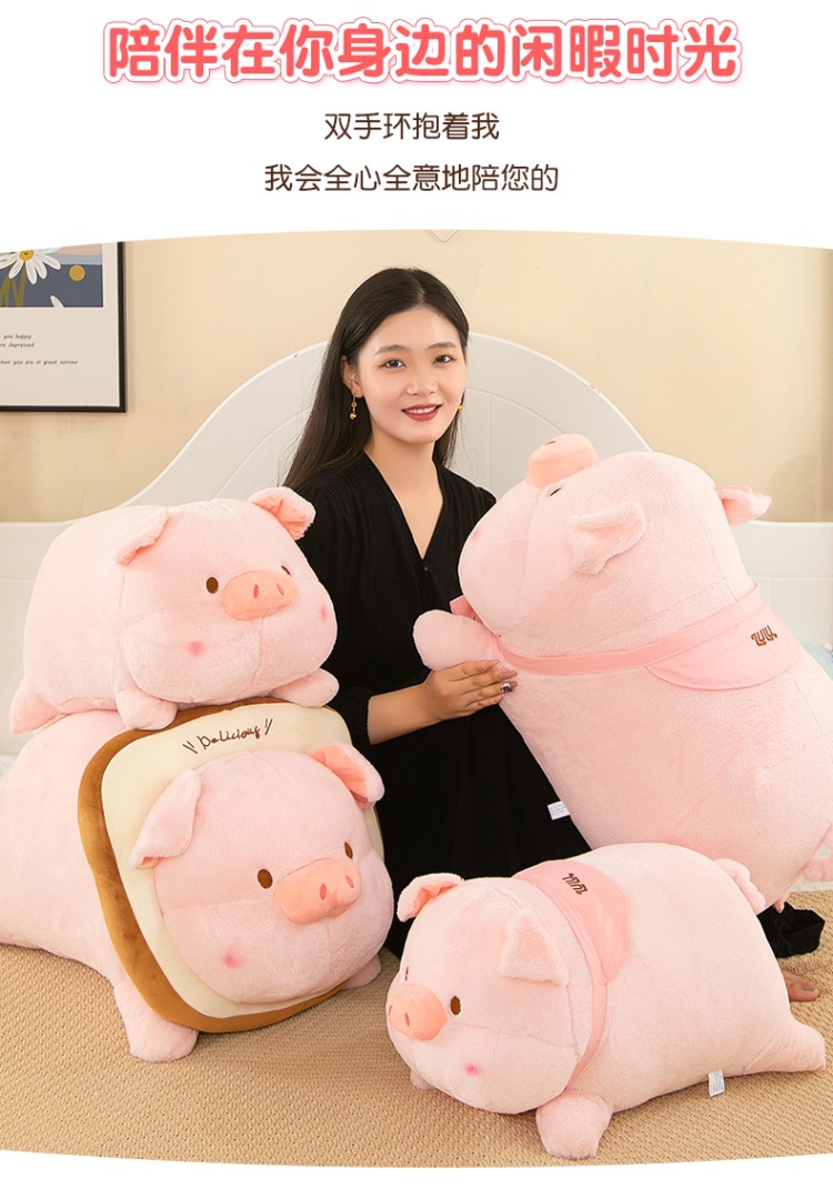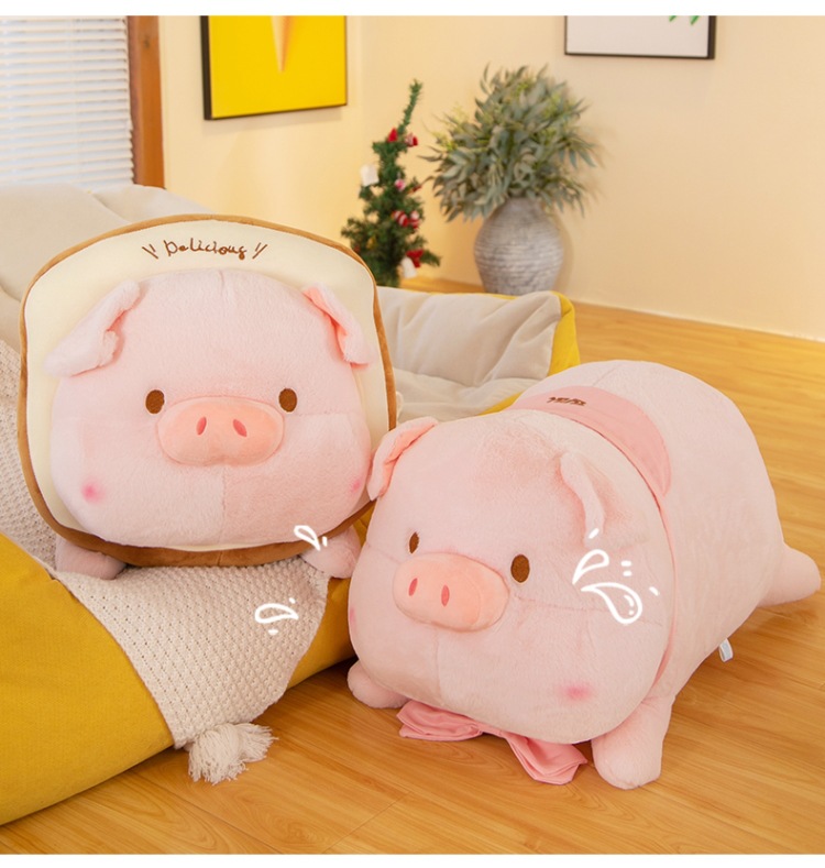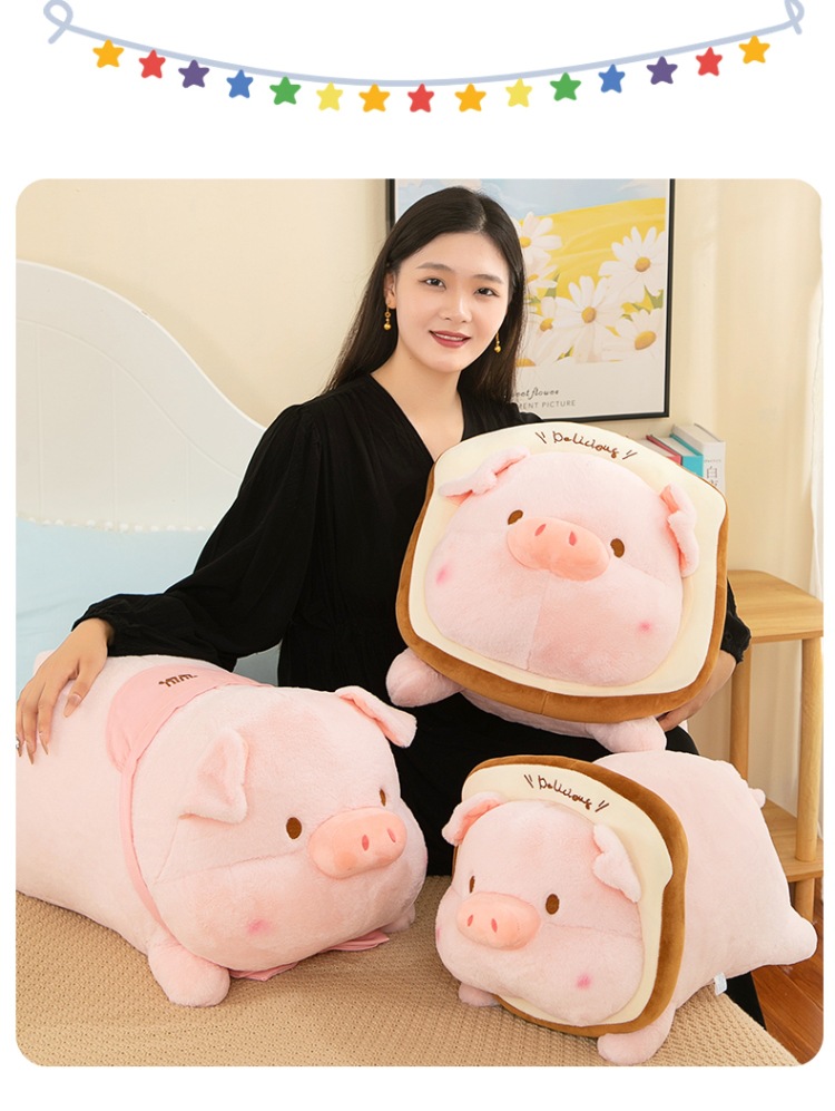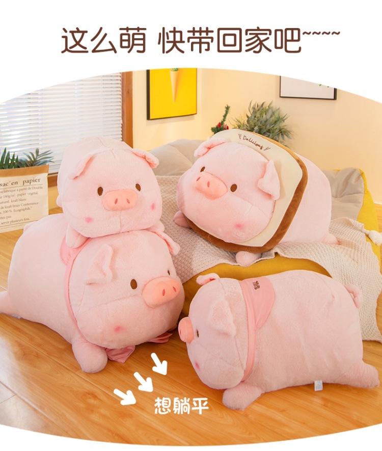누워 버전 토스트 루루 돼지 봉제 인형 새로운 긴 머리 작은 핑크 돼지 봉제 인형 베개 재고 도매스토어 가기
