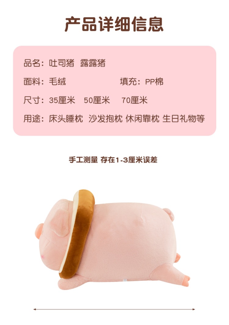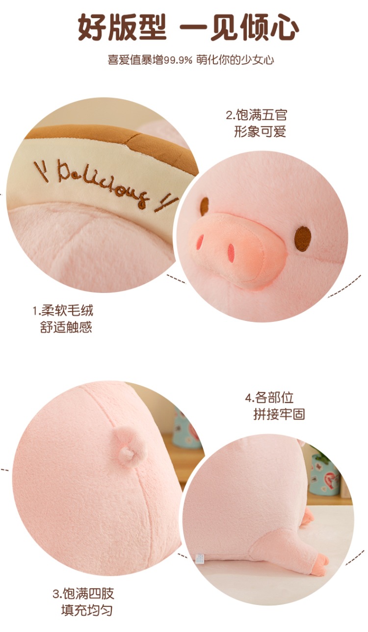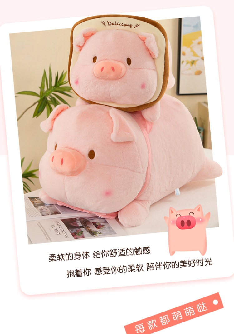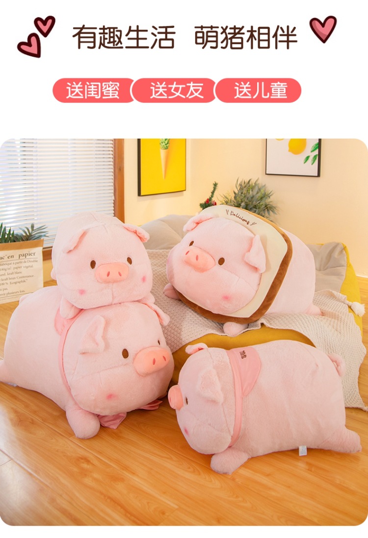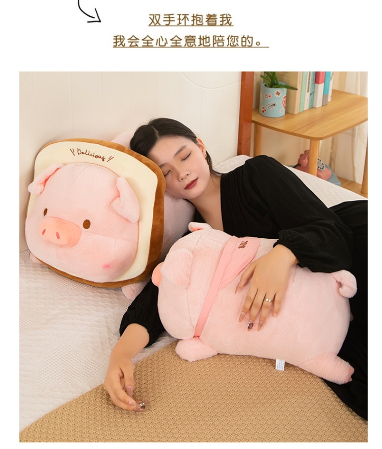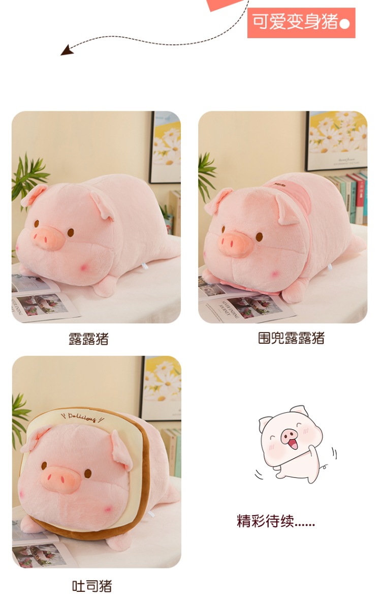 누워 버전 토스트 루루 돼지 봉제 인형 새로운 긴 머리 작은 핑크 돼지 봉제 인형 베개 재고 도매스토어 가기