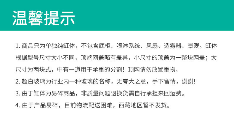 雨林缸质保三个月,造景前一定要先试水,考虑好缸体承重问题。