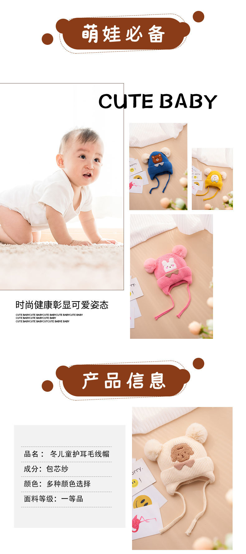 어린이 모자 겨울 새 양모 모자 두꺼운 귀 보호 니트 모자 만화 귀 보호 모자 따뜻한 조수 1-3 세
