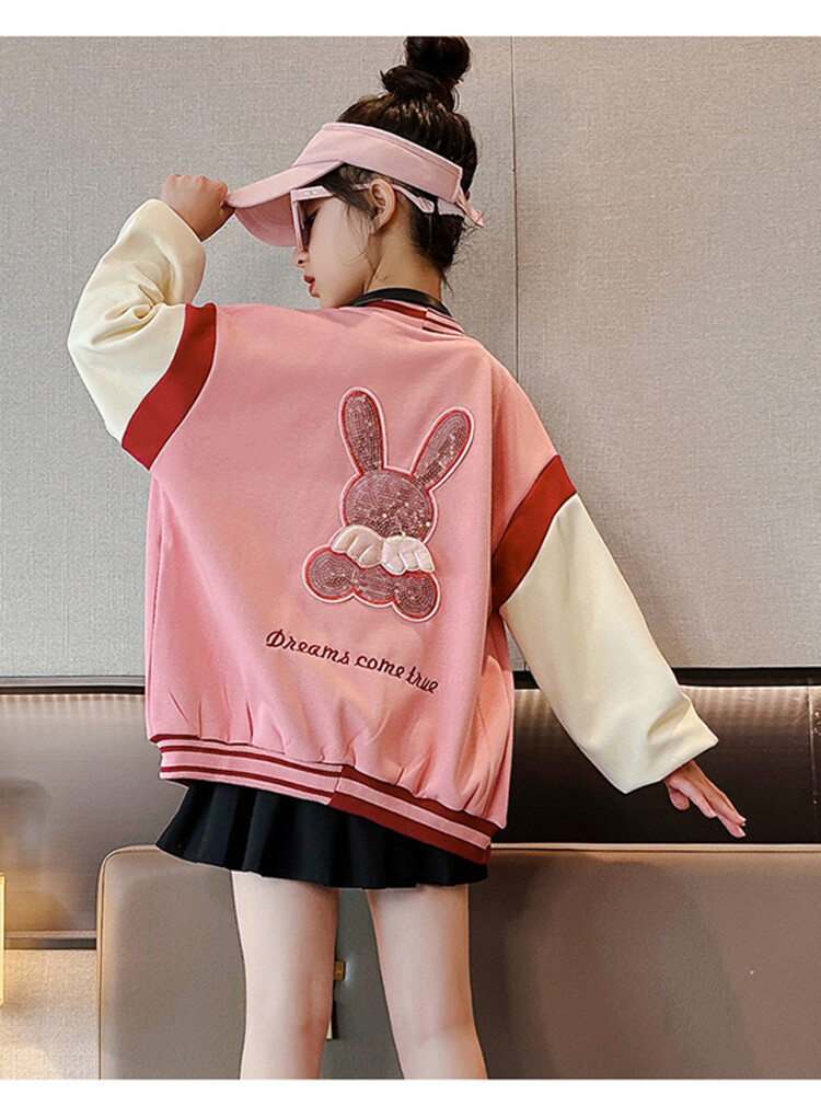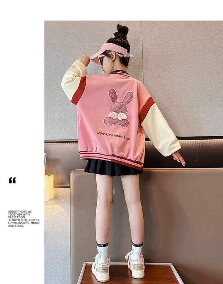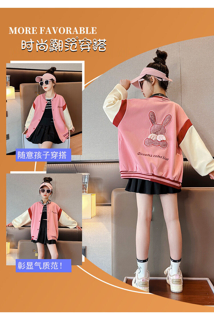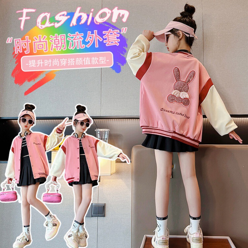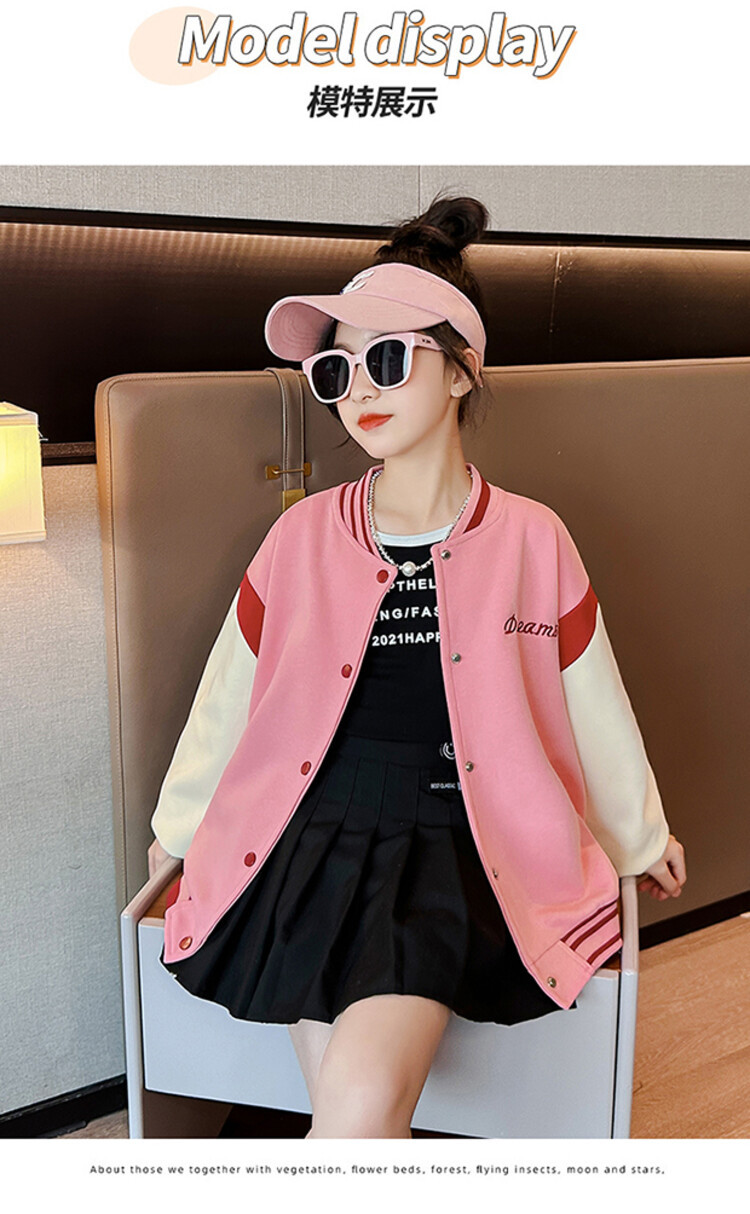 여아 가을 코트 2023 새로운 여아 서양식 아동복 캐주얼 느슨한 야구복 색상 매칭 레터 탑스토어 가기