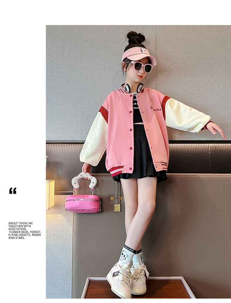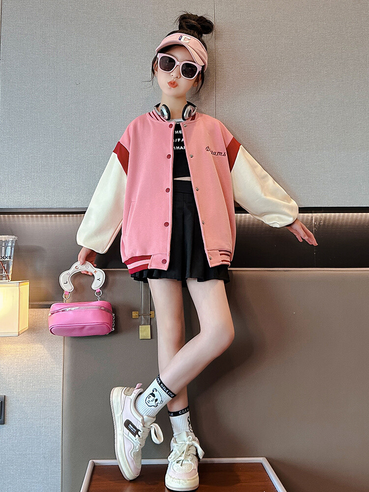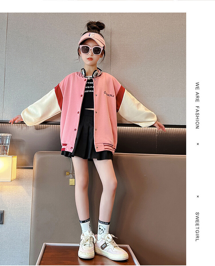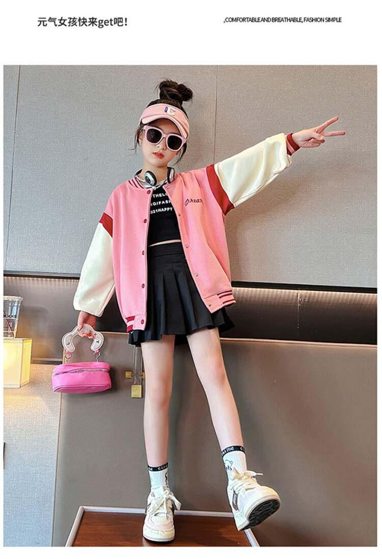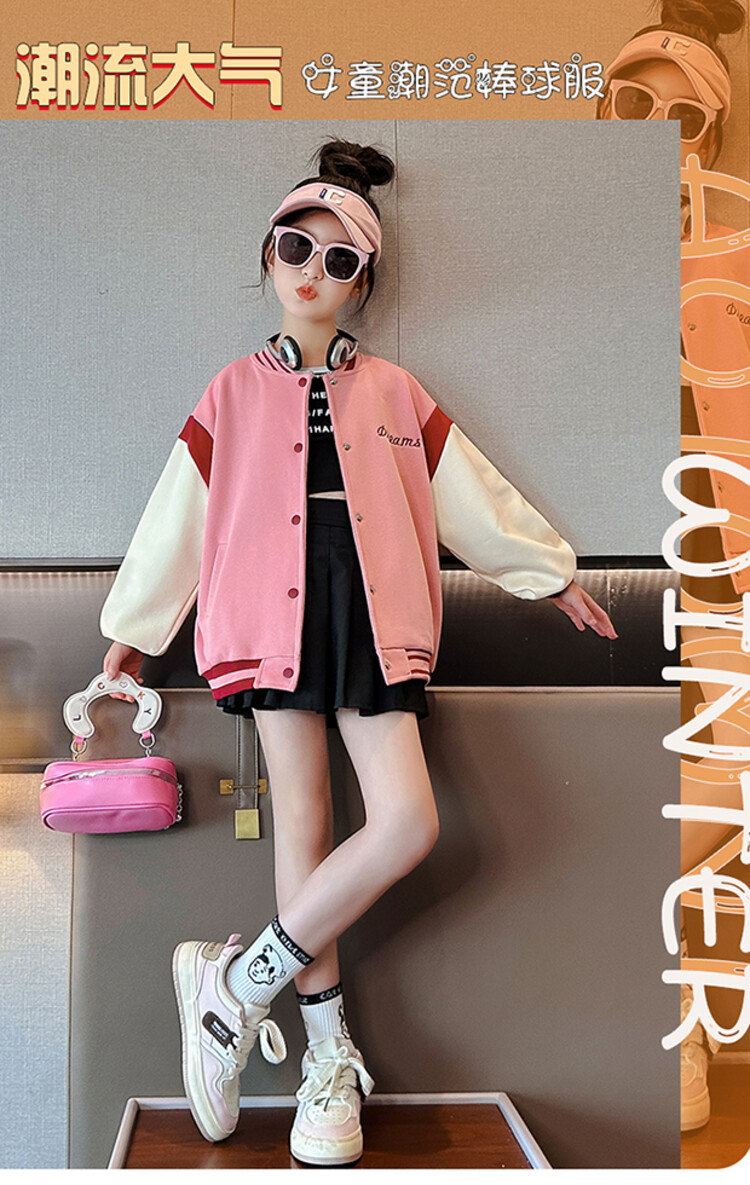 여아 가을 코트 2023 새로운 여아 서양식 아동복 캐주얼 느슨한 야구복 색상 매칭 레터 탑