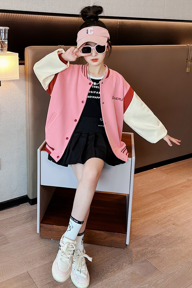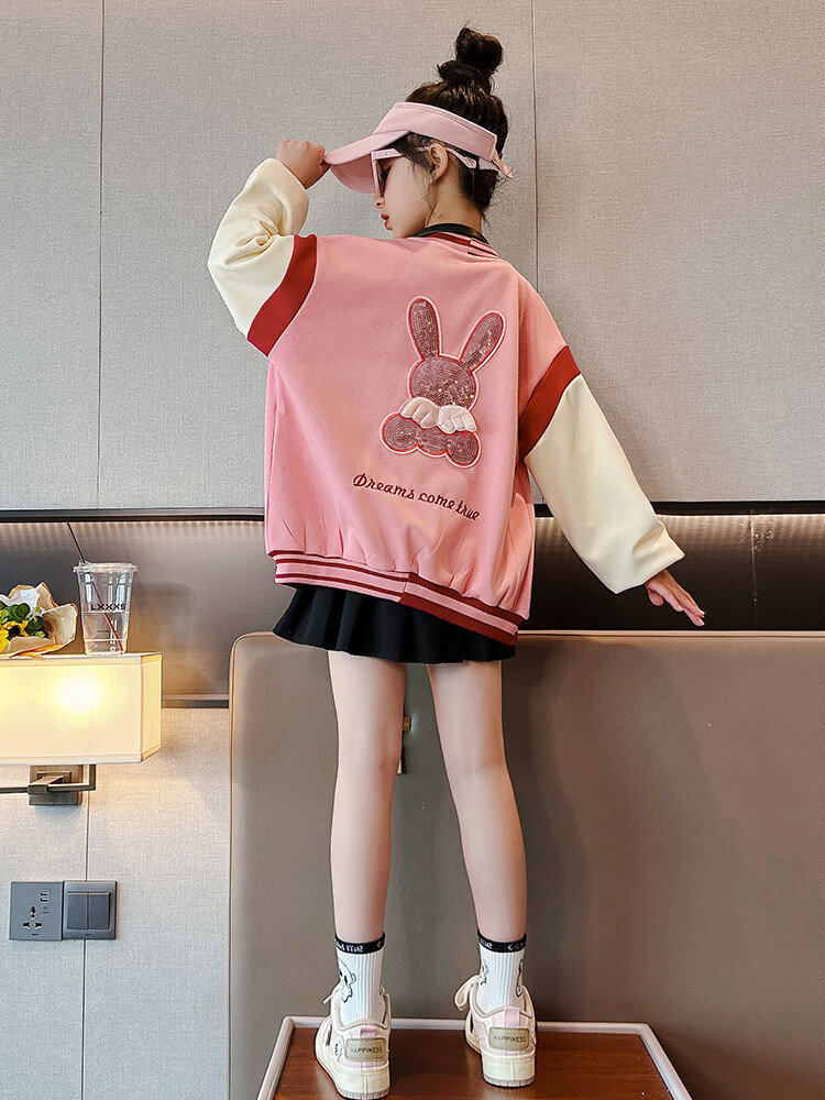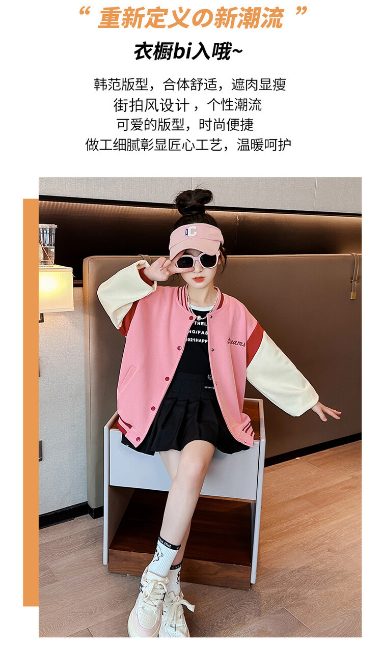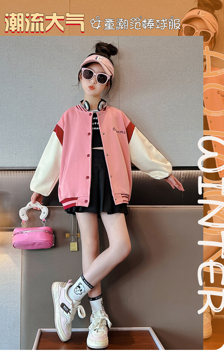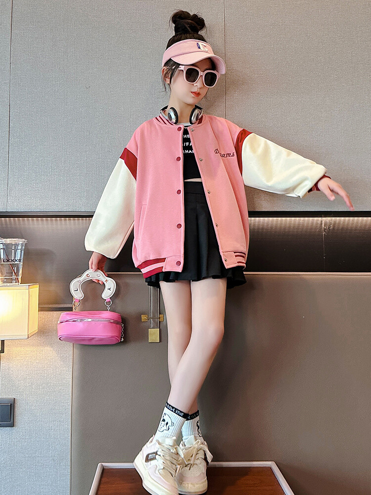 여아 가을 코트 2023 새로운 여아 서양식 아동복 캐주얼 느슨한 야구복 색상 매칭 레터 탑