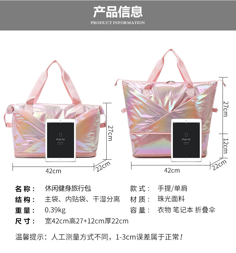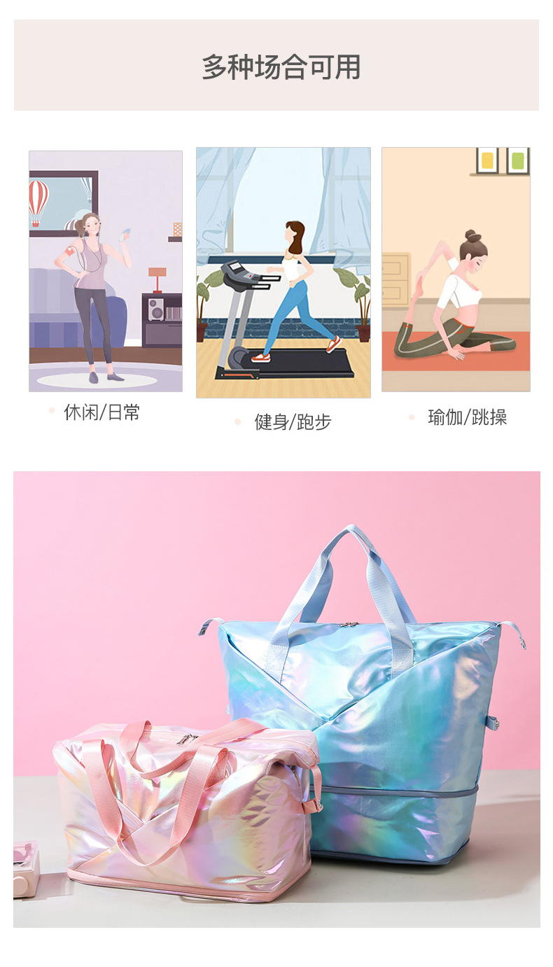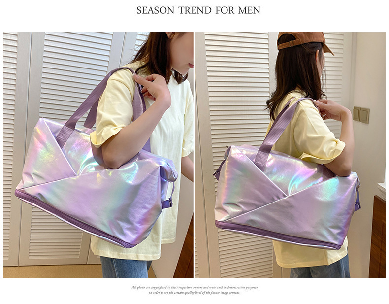 레이저 다채로운 여행 가방 대용량 간단한 요가 가방 여성용 단거리 여행 핸드백 유행 피트니스 가방