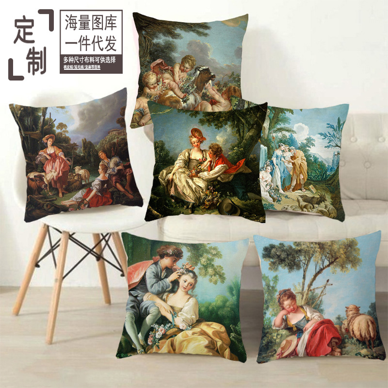 국경 간 유럽 로코코 아트 유화 복숭아 피부 벨벳 베개 케이스 가정 장식 소파 스퀘어 베개 낮잠 베개스토어 가기