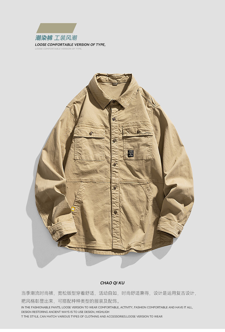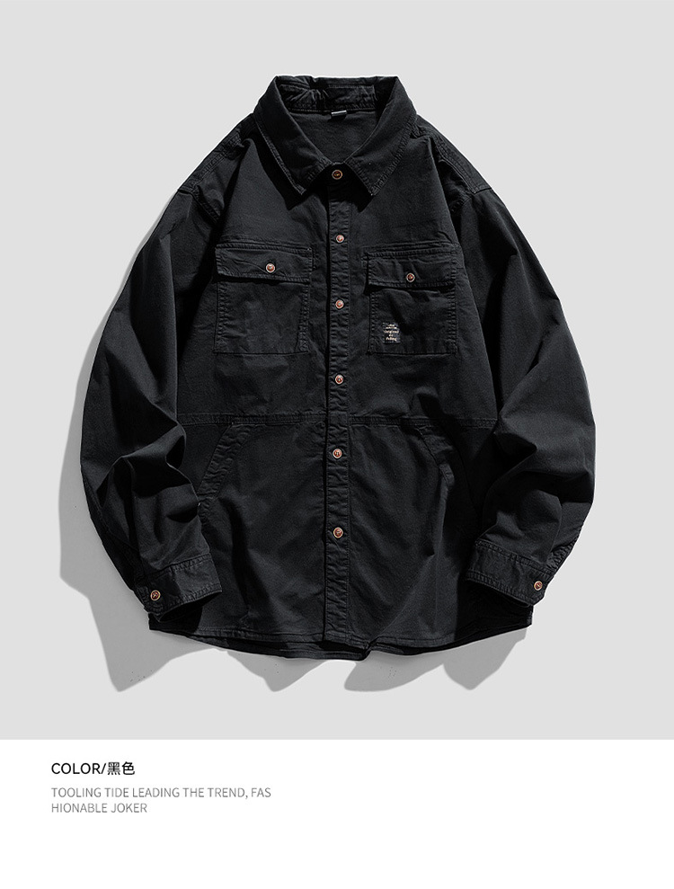 남자의 가을 새로운 2023 홍콩 스타일 긴 소매 옷깃 셔츠 패션 간단한 모든 경기 스포츠 야외 성격