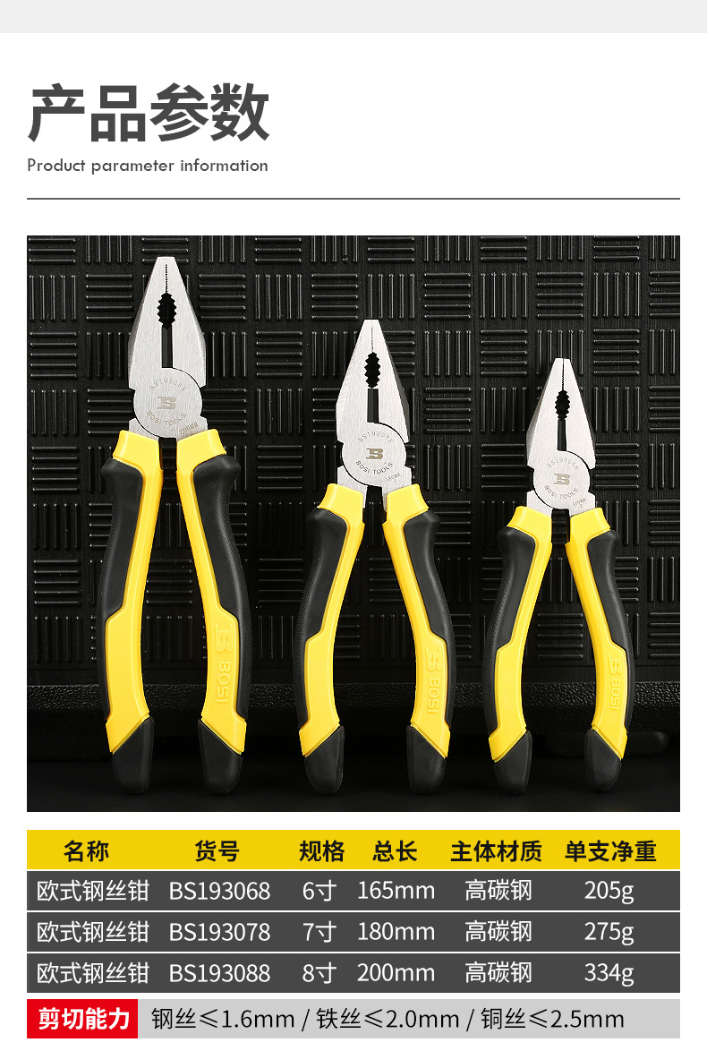 페르시아식 와이어 플라이어 노동 절약 타이거 플라이어 다기능 플랫 입 플라이어 와이어 커터 BS193068(6 인치스토어 가기