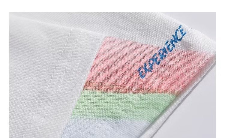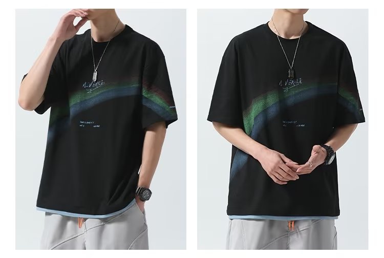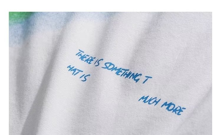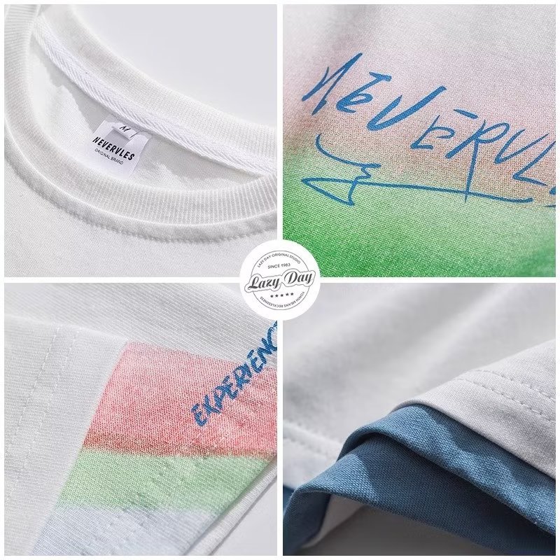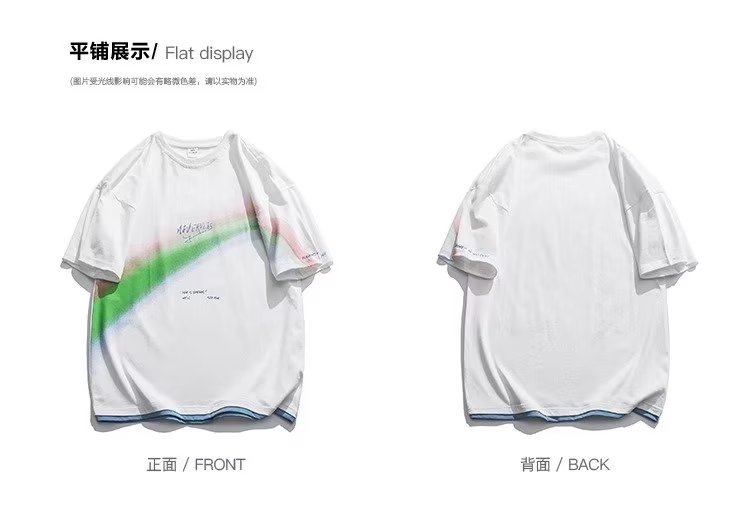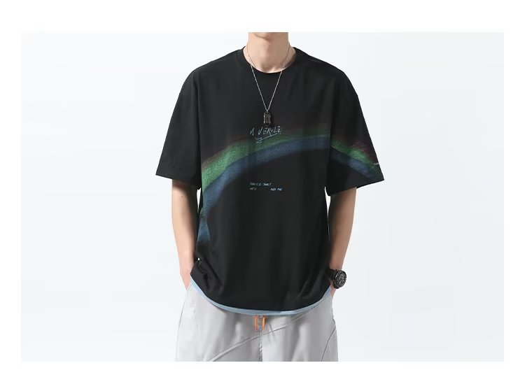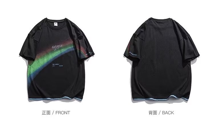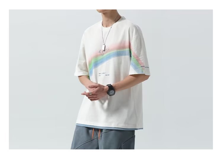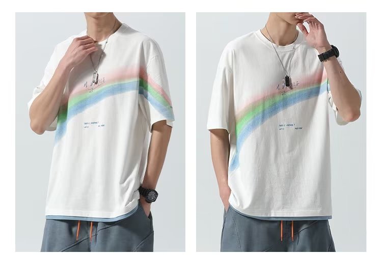 (면) 레인보우 레터 프린팅 반팔 티셔츠 남성용 라운드 넥 루즈한 캐주얼 틈새 십대를위한 모든 매치 커플 의류스토어 가기