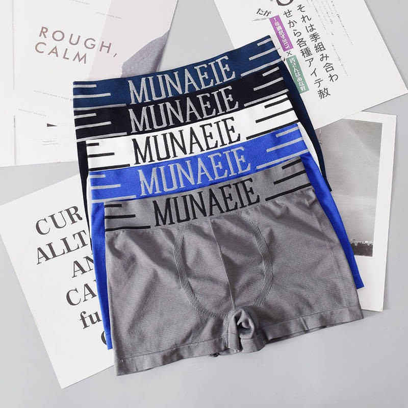 MUNAFIE 원활한 남성 복서 속옷 통기성과 편안한 고탄성 미드 웨이스트 복서 바지