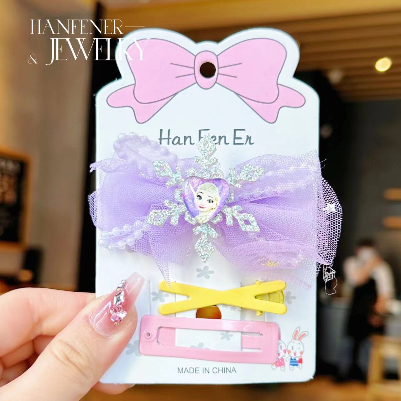 어린이 머리핀 활 만화 더블 클립 냉동 공주 아이샤 머리핀 3 종 세트 절묘한 어린이 헤어 액세서리