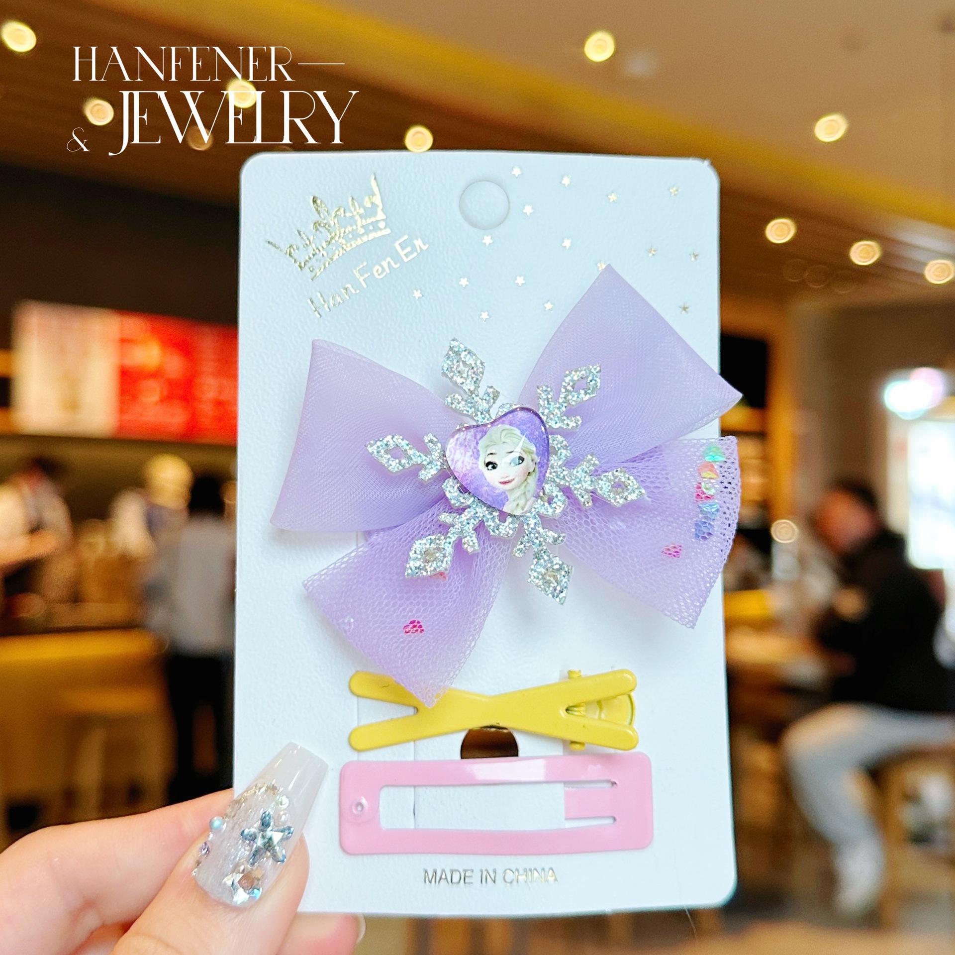 어린이 머리핀 활 만화 더블 클립 냉동 공주 아이샤 머리핀 3 종 세트 절묘한 어린이 헤어 액세서리스토어 가기