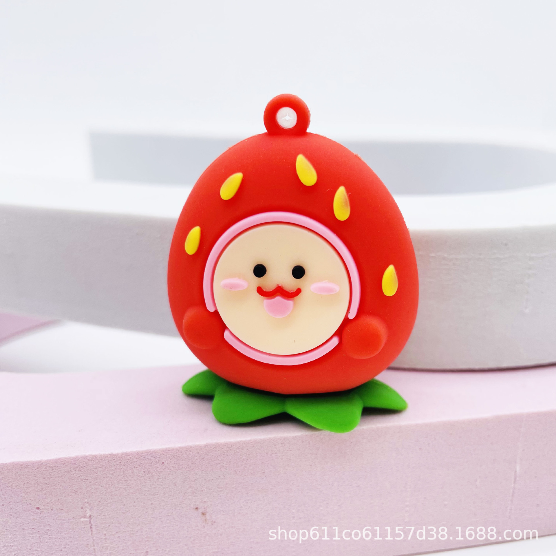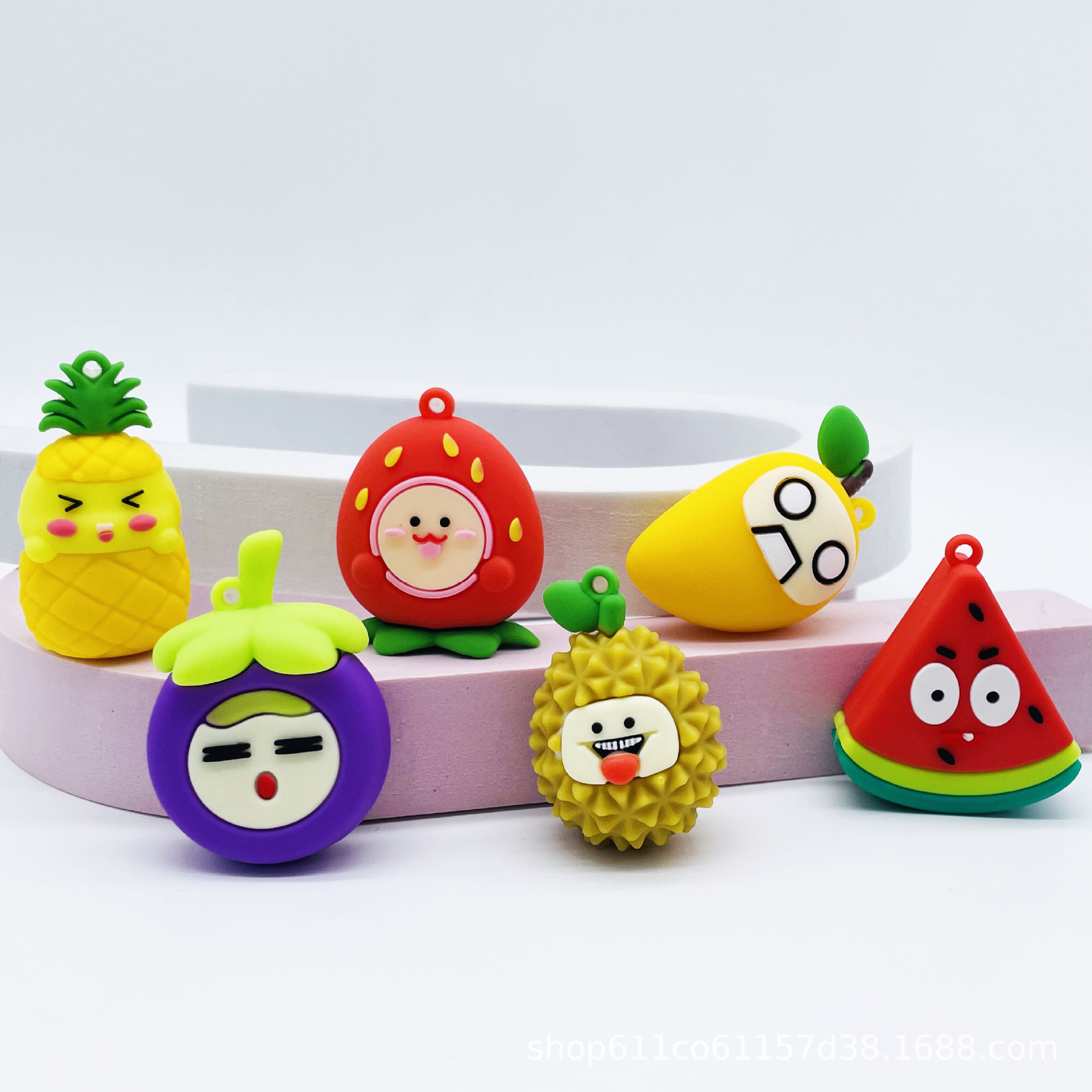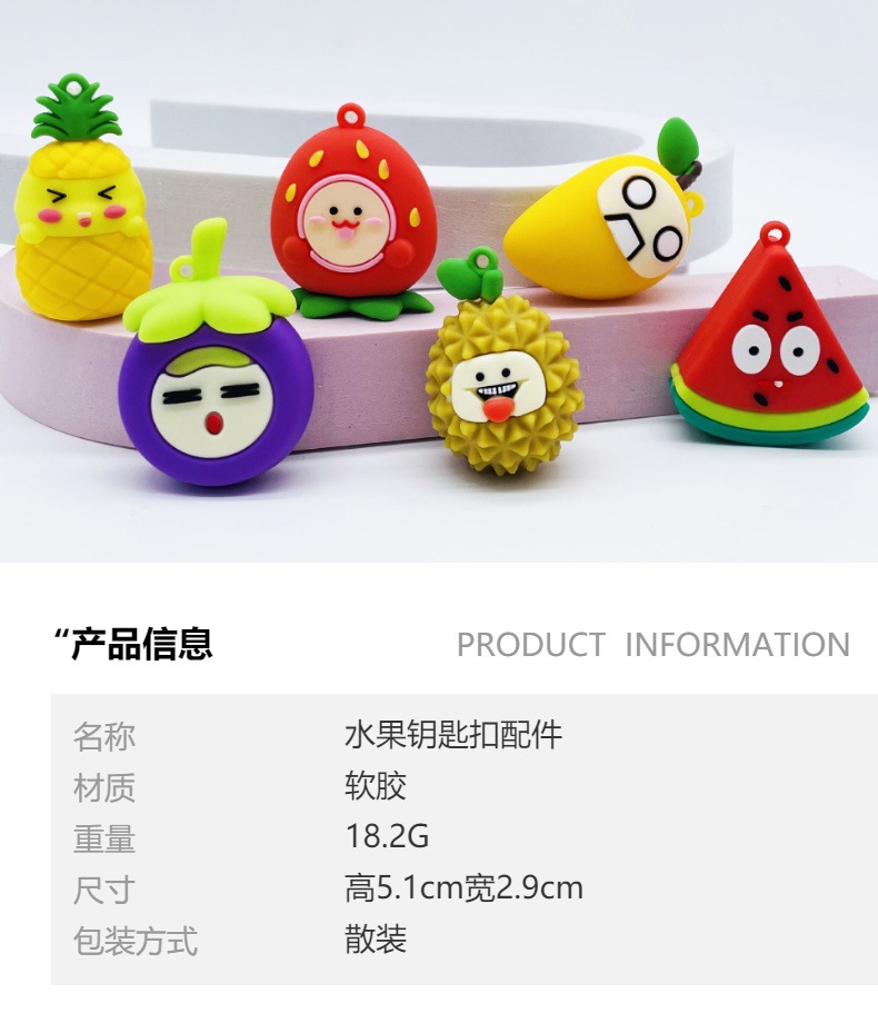 새로운 시뮬레이션 소프트 접착제 과일 키 체인 액세서리 수박 두리안 망고 딸기 키 체인 DIY 액세서리 도매