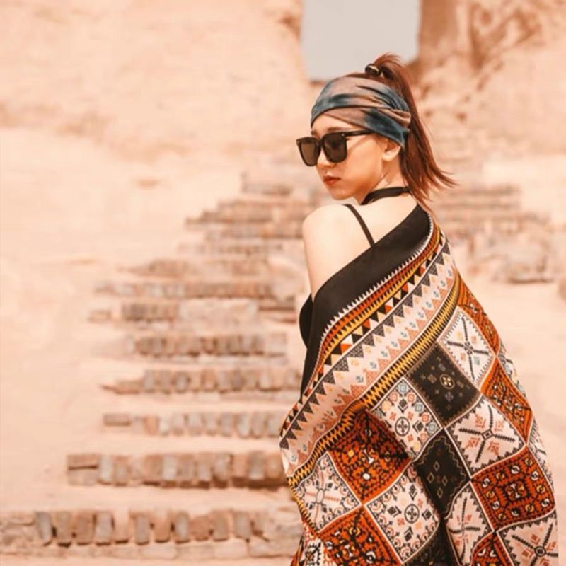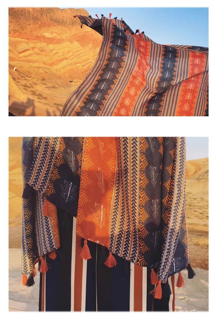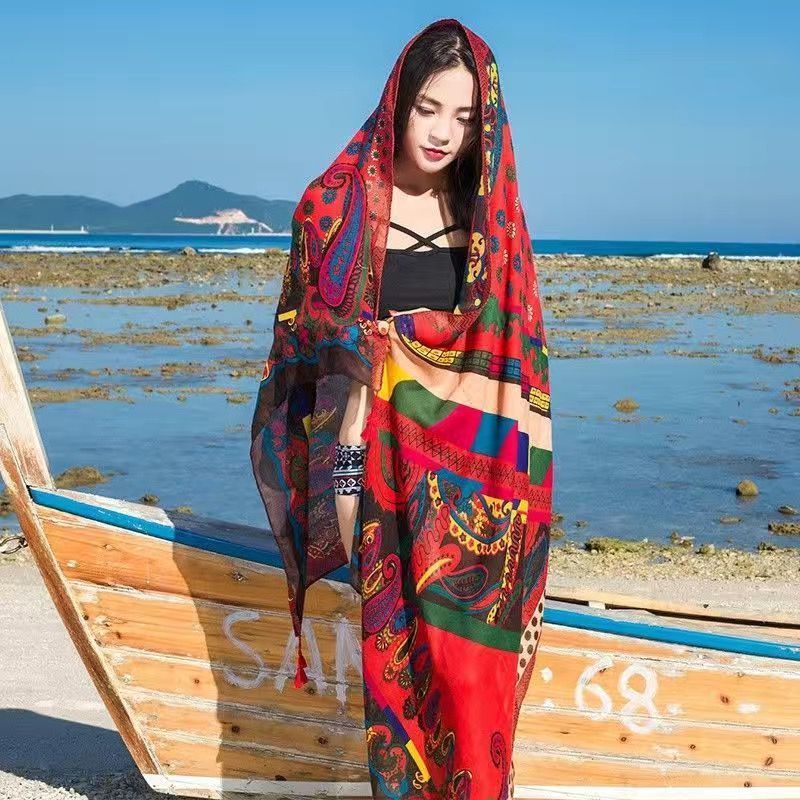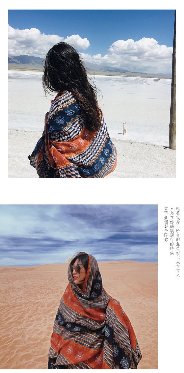새로운 에스닉 스타일 숄 여행 사진 티 카드 솔트 레이크 이중 사용 사막 자외선 차단제 스카프 여성용 면과 린넨 모든 매치 아트스토어 가기