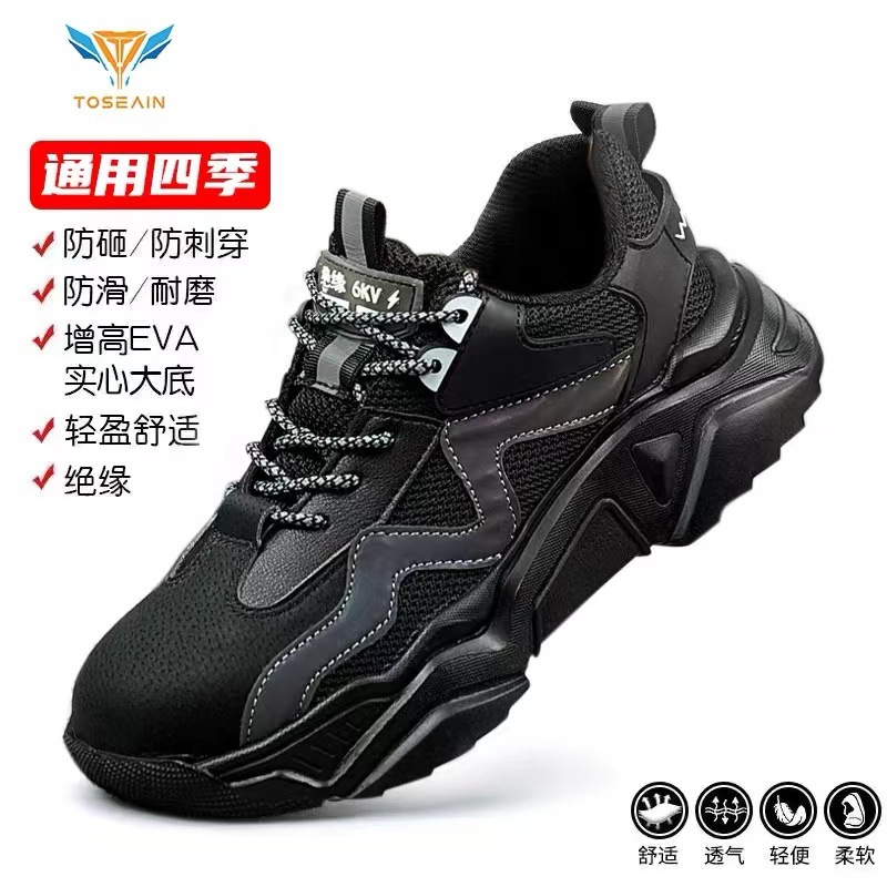 새로운 블랙 키 큰 보호 신발 여름 통기성 안티 스매시 펑크 방지 안전 및 편안한 캐주얼 여성 신발