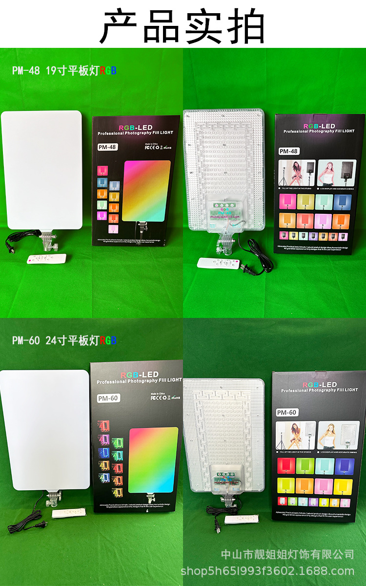 PM-48/60 정사각형 평면 패널 램프 라이브 필 라이트 19/24 인치 RGB 뷰티 사진 램프 전체 화면 라이브 라이트
