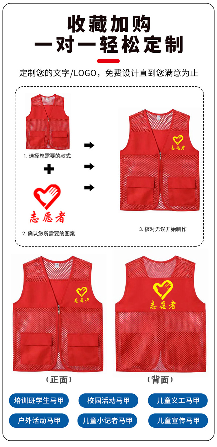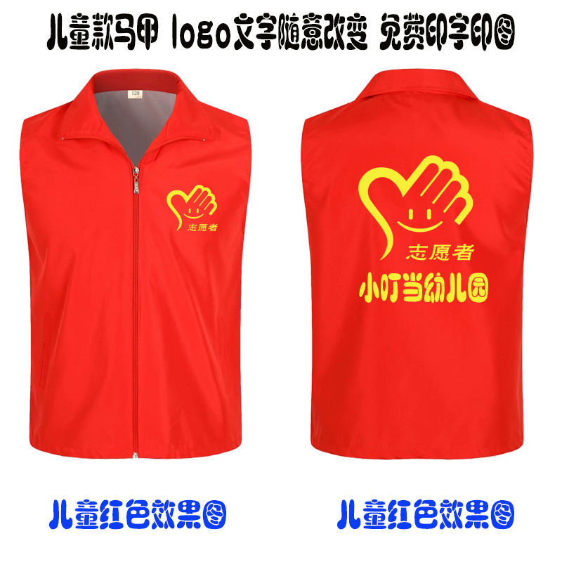 유치원 어린이 조끼 클립 맞춤 인쇄 초등학교 학생 자원 봉사 활동 홍보 자원 봉사자 빨간 조끼 로고