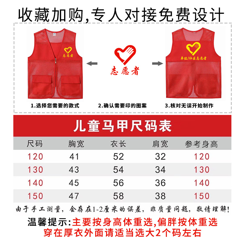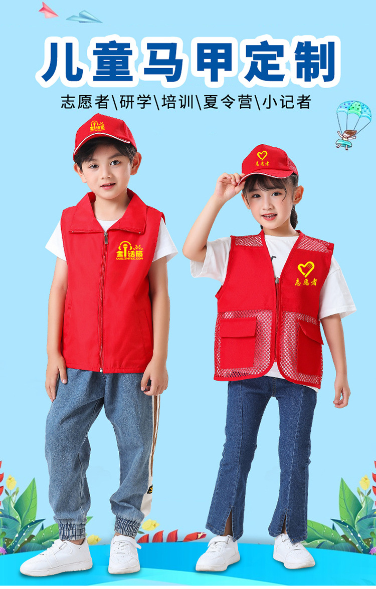 유치원 어린이 조끼 클립 맞춤 인쇄 초등학교 학생 자원 봉사 활동 홍보 자원 봉사자 빨간 조끼 로고스토어 가기
