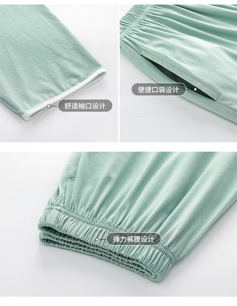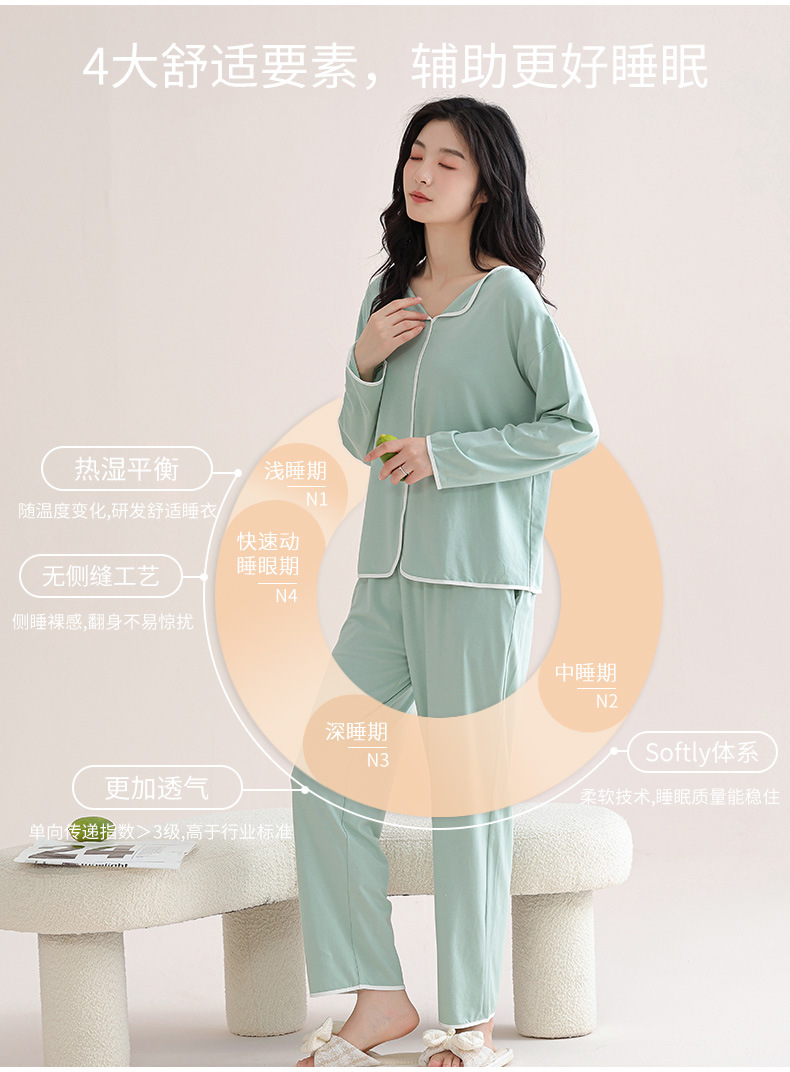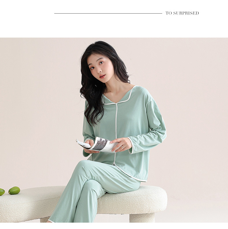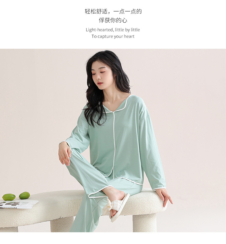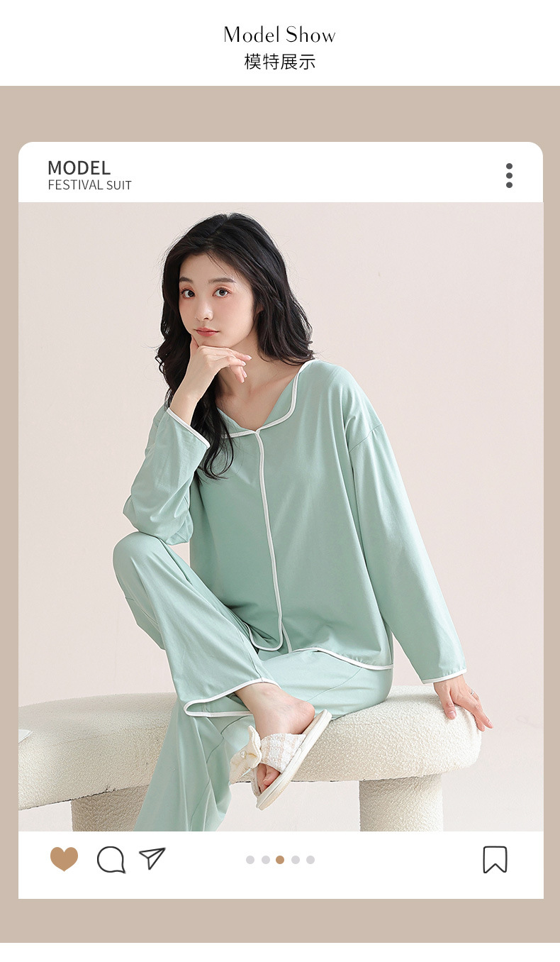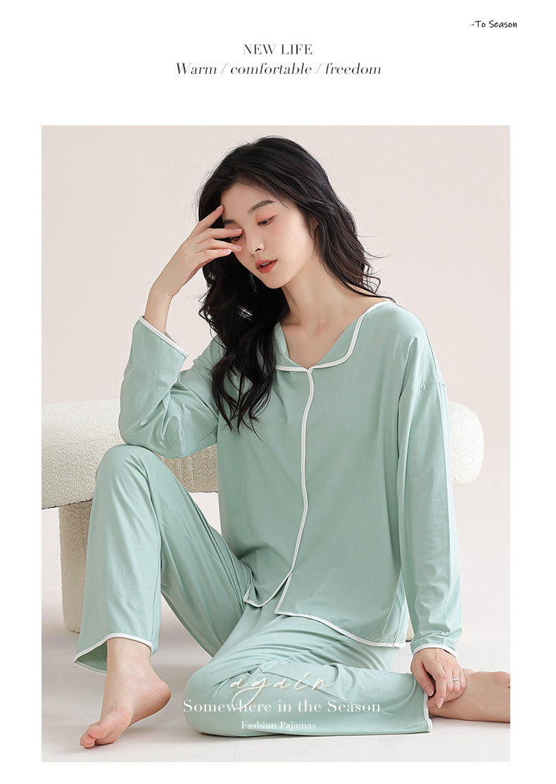 여성 잠옷 가을 새로운 모달 가슴 패드 긴 소매 바지는 Homewear 세트 Dropshipping 외부 착용 가능스토어 가기