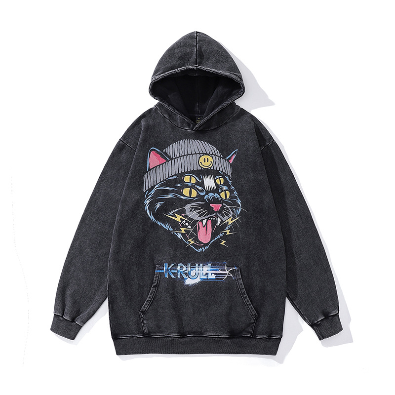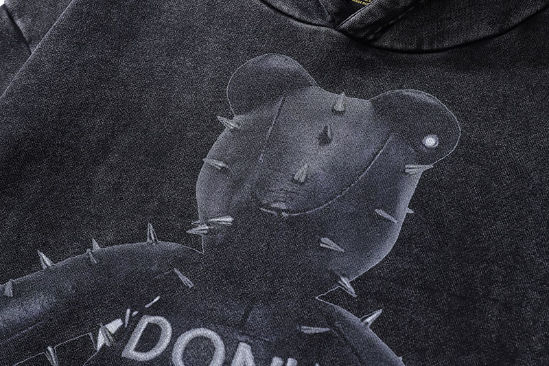 TKPA 유럽 및 미국 하이 스트리트 디아블로 베어 프린트 스포츠 후드 힙합 스트리트 워시 드레스 까마귀 남성